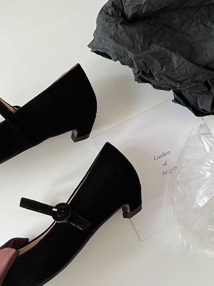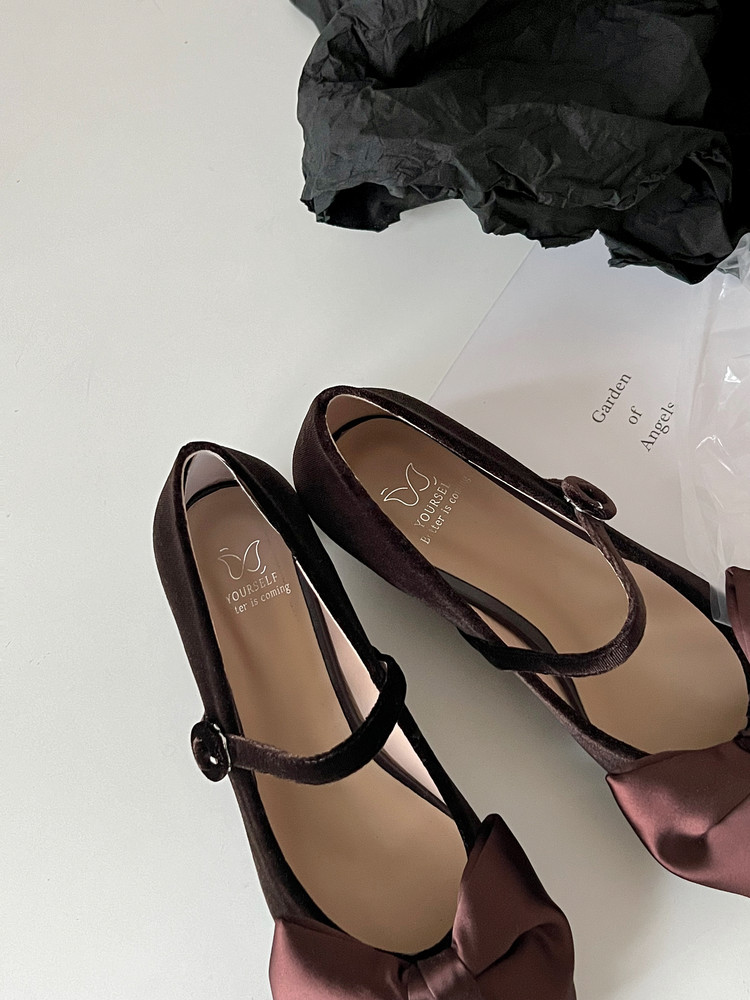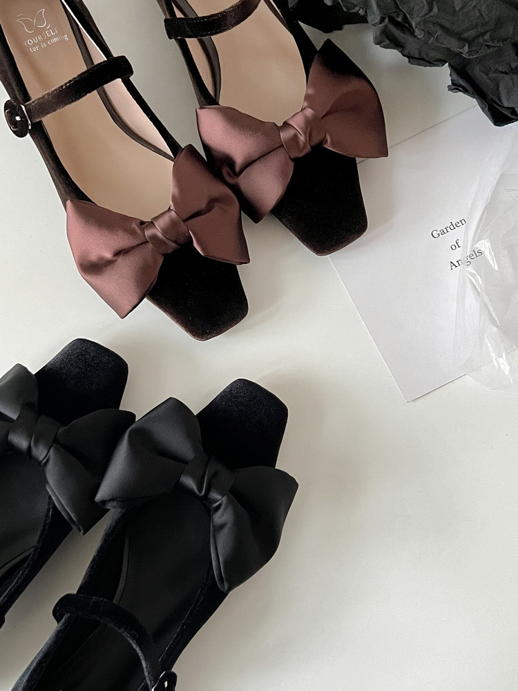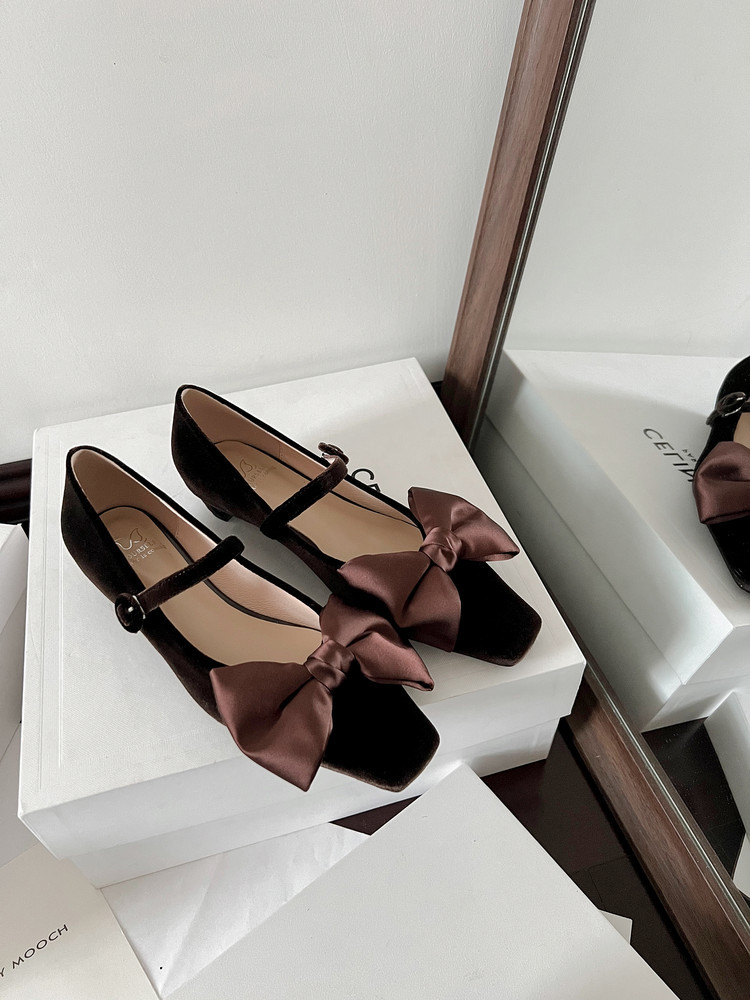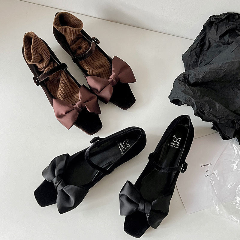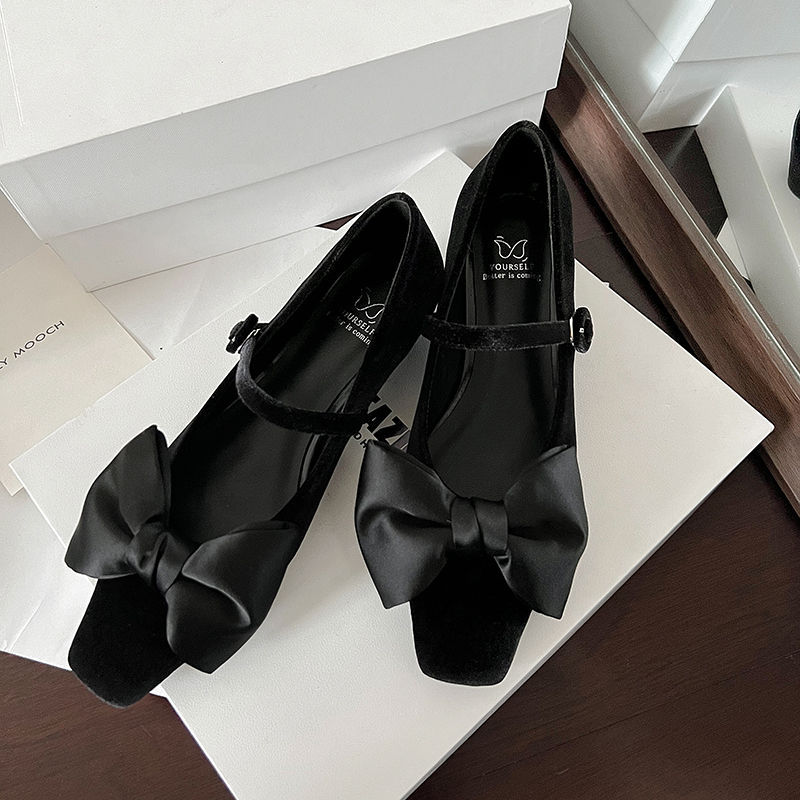 벨벳 스위트 보우 메리 제인 신발 여성 로우 힐 2025 봄 광장 발가락 고양이 뒤꿈치 얕은 입 신발 여성용 신발 트렌디스토어 가기