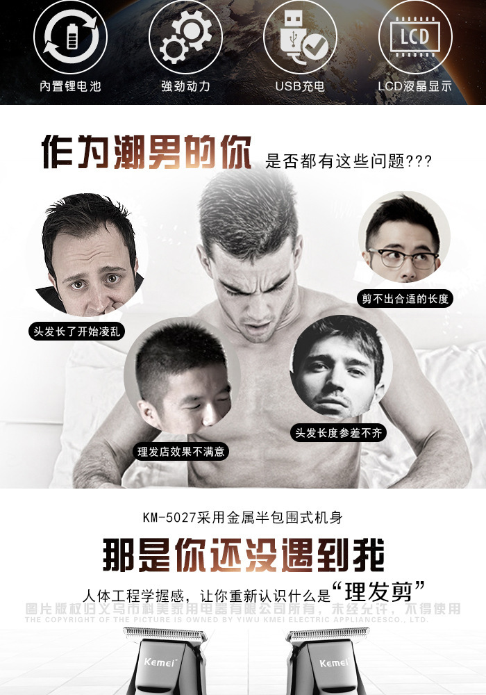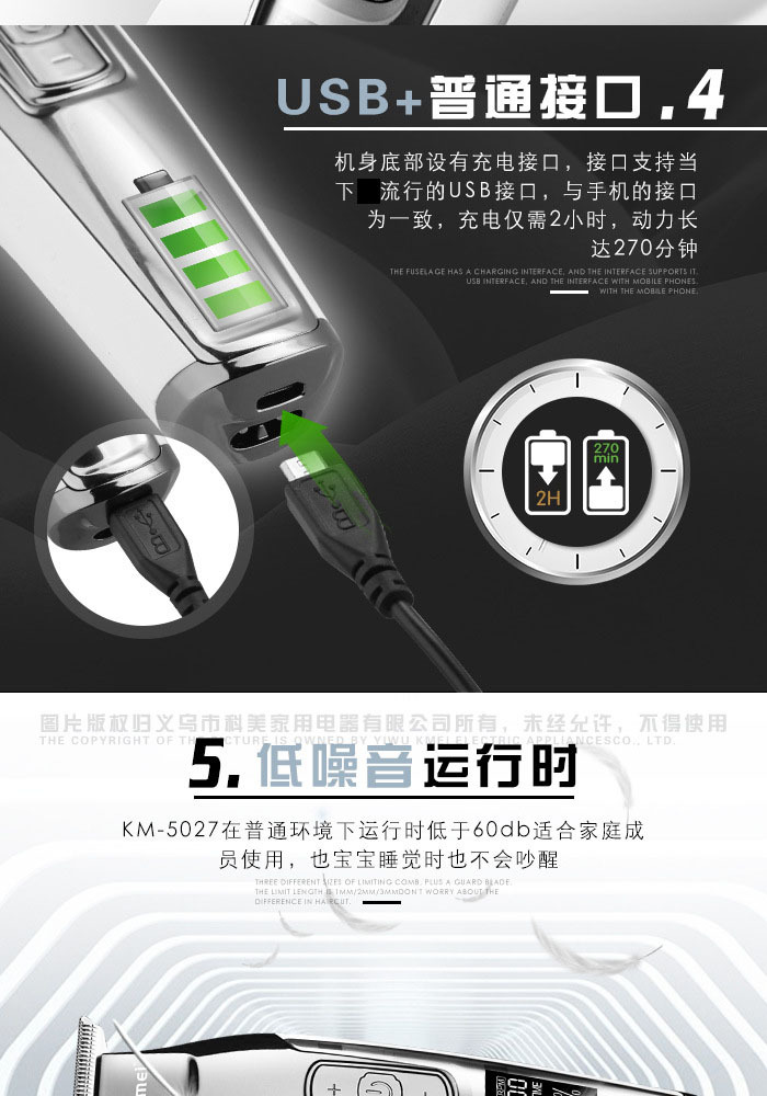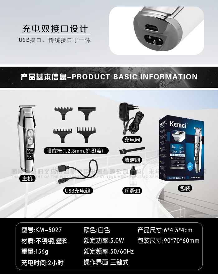 • KM-5027 (USB 모델) + 충전기 + 천 스펀지 모델 + 예비 칼날 1개