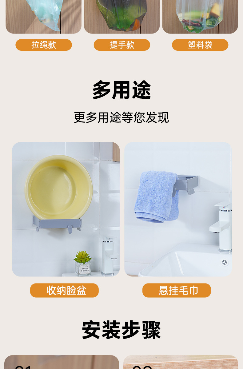 접이식 휴지통 가정용 캐비닛 벽걸이 비닐 봉투 걸이 주방 욕실 보관 랙 쓰레기 봉투 홀더