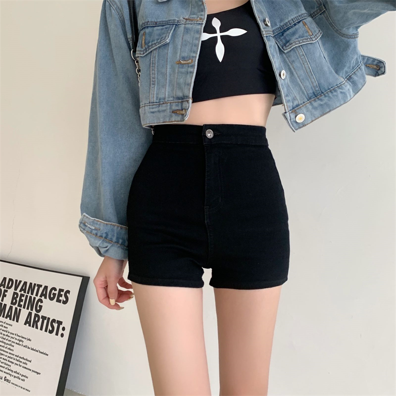 검은 색 단어 데님 반바지 여성의 가을과 겨울 스파이스 소녀 꽉 높은 허리 슬리밍 작은 뜨거운 바지 스트레이트 와이드 다리 바지스토어 가기