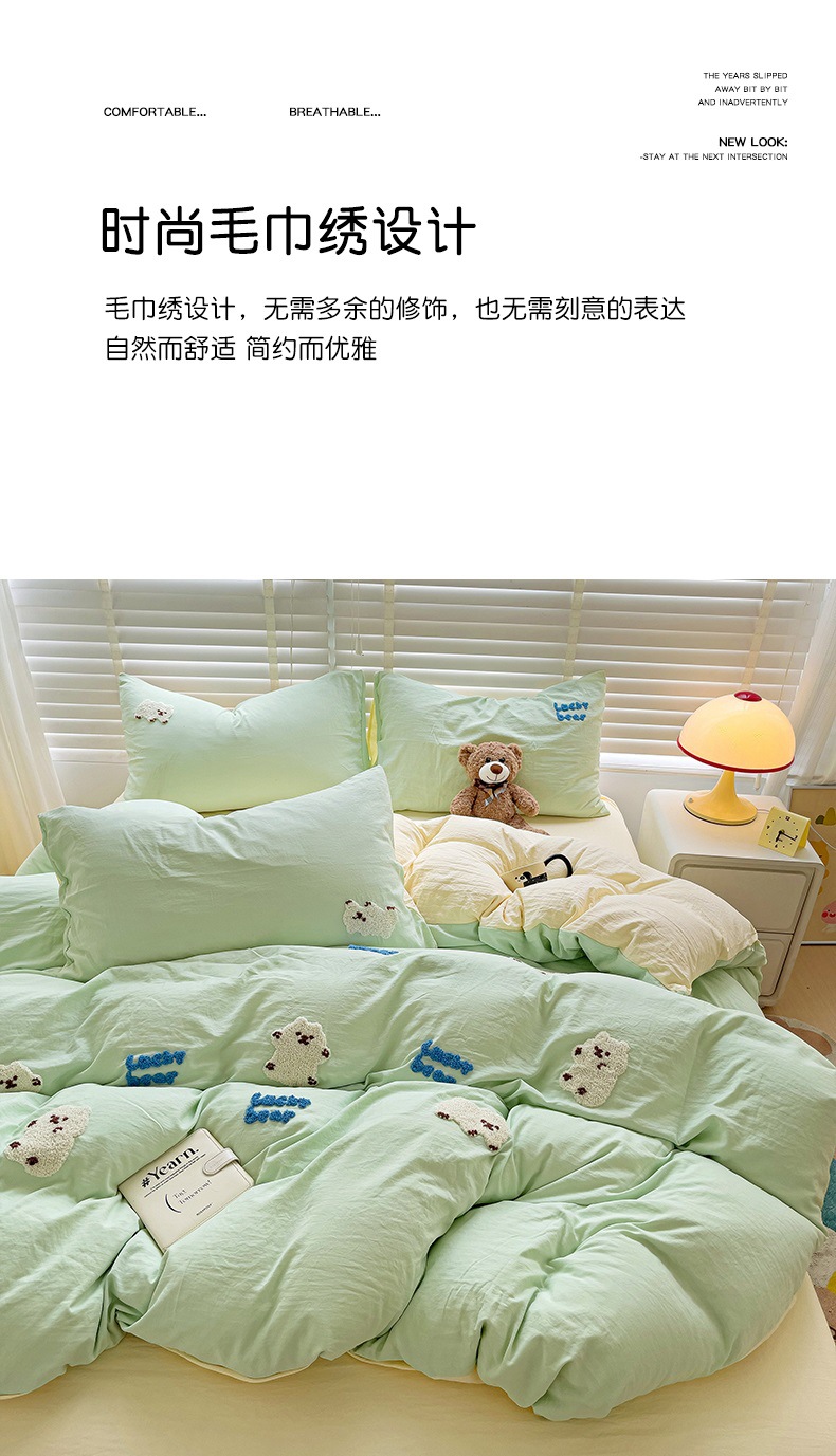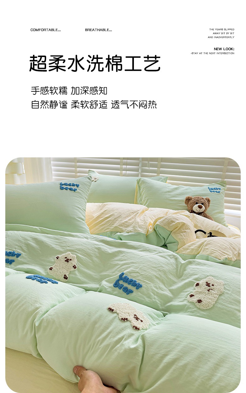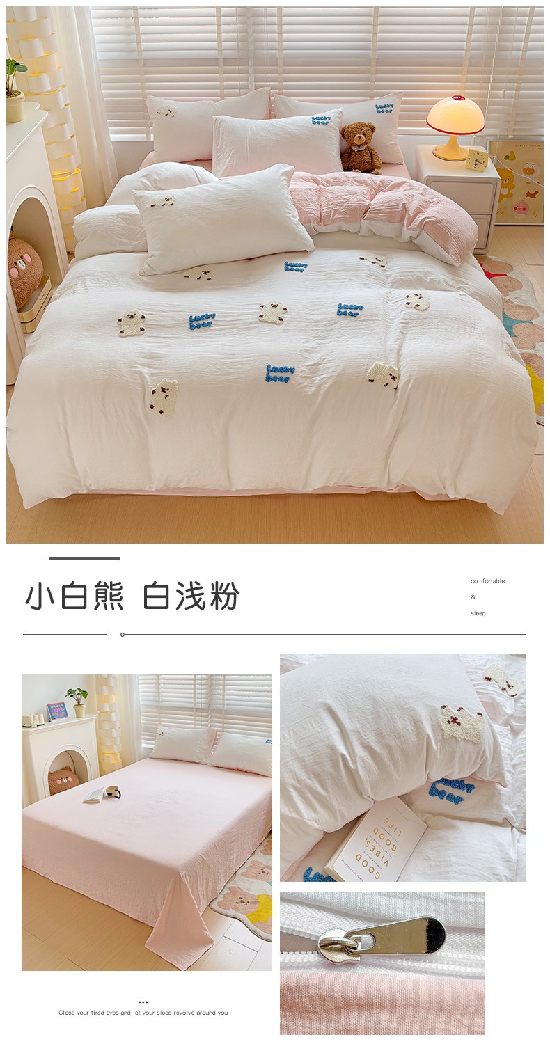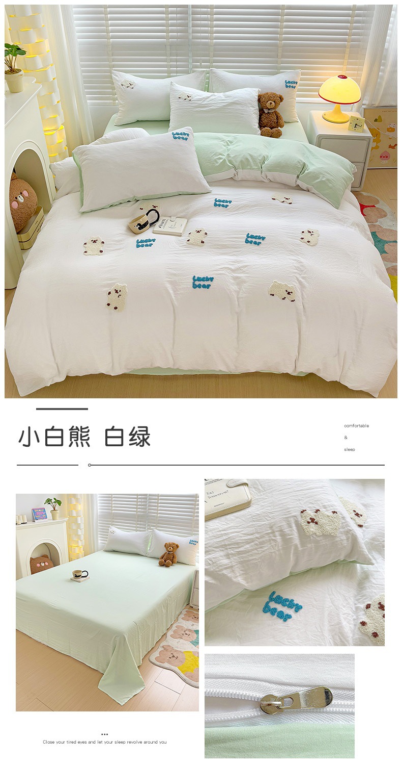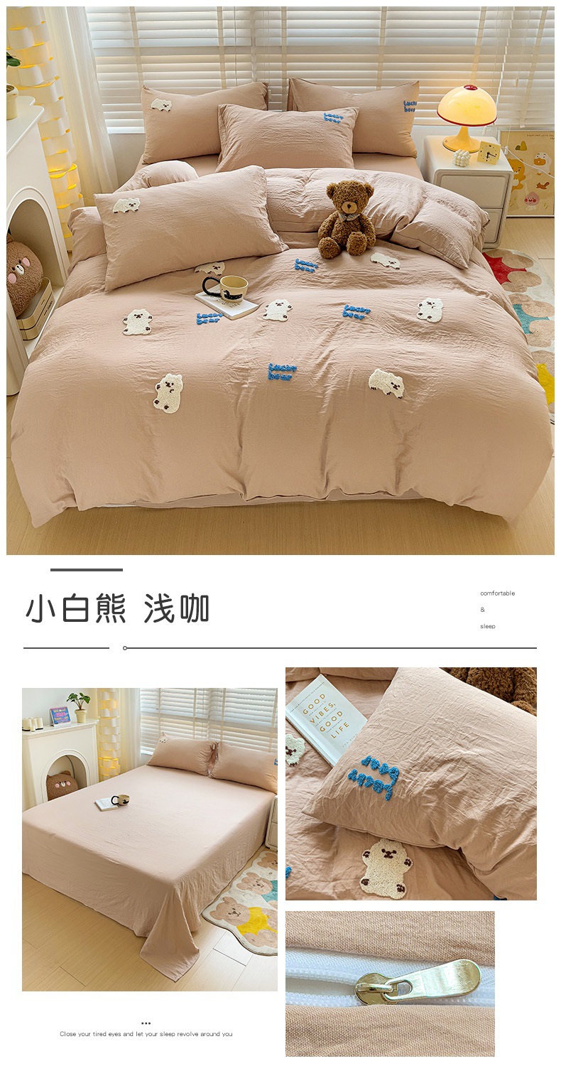 2025 새로운 슈퍼 소프트 워시면 작은 흰색 곰 수건 자수 4 피스 세트스토어 가기