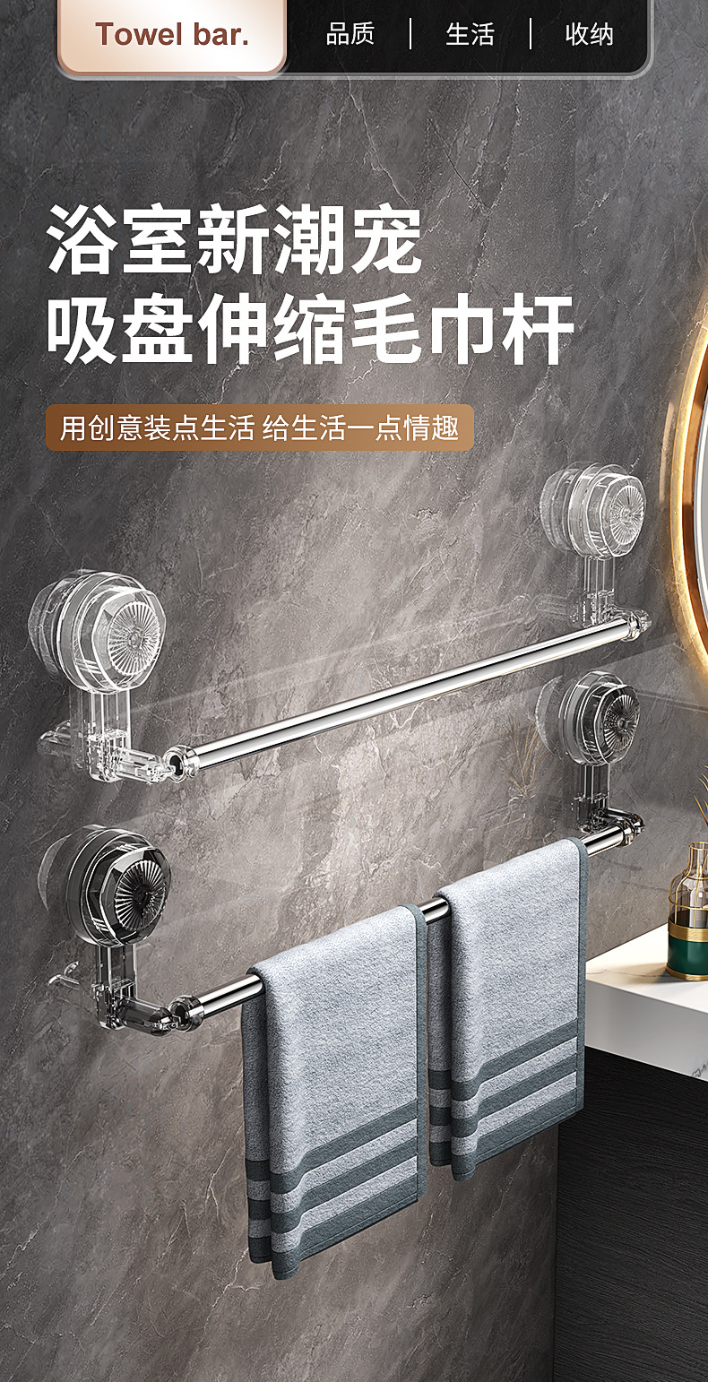 • 투명 회색 수건걸이 수납식(65CM-130CM)