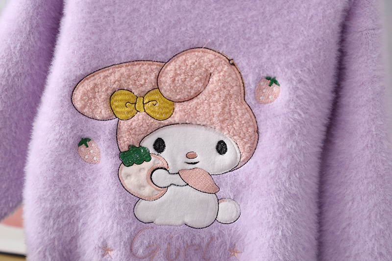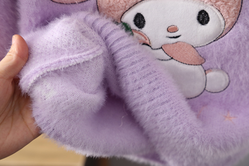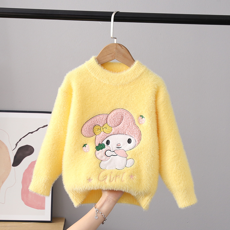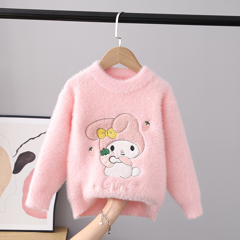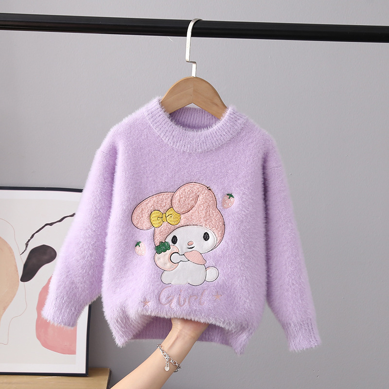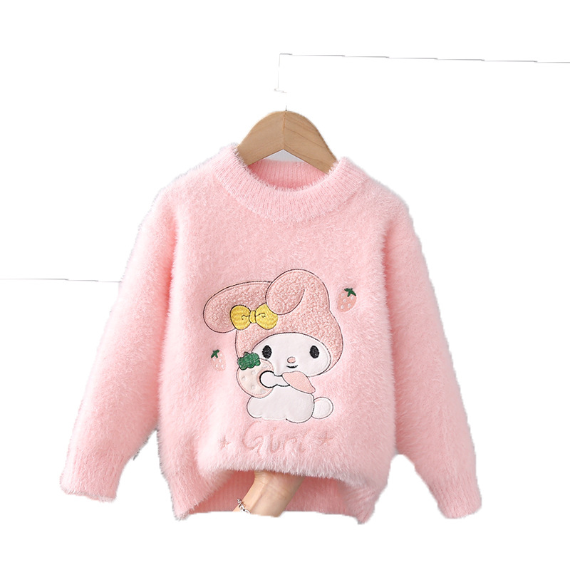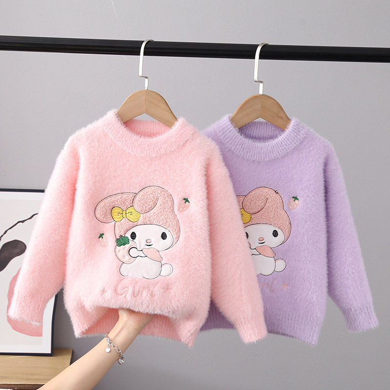 2025 새로운 소녀 밍크 벨벳 스웨터 풀오버 가을과 겨울 외국 스타일 스웨터 큰 어린이를위한 두꺼운 따뜻한 기본 셔츠스토어 가기