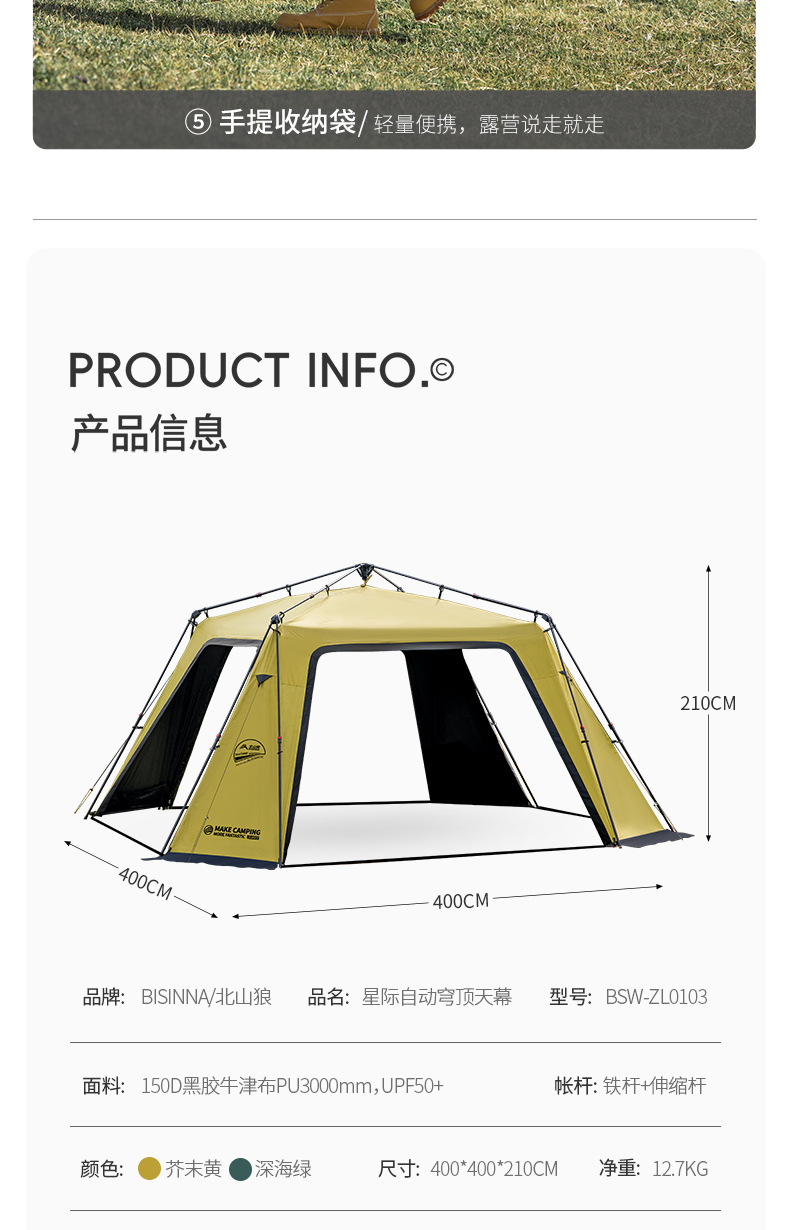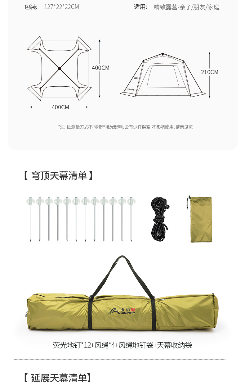 Beishan 늑대 검은 접착제 빠른 무료 돔 텐트 야외 캠핑 장비 슈퍼 공간 태양 보호 및 양산스토어 가기