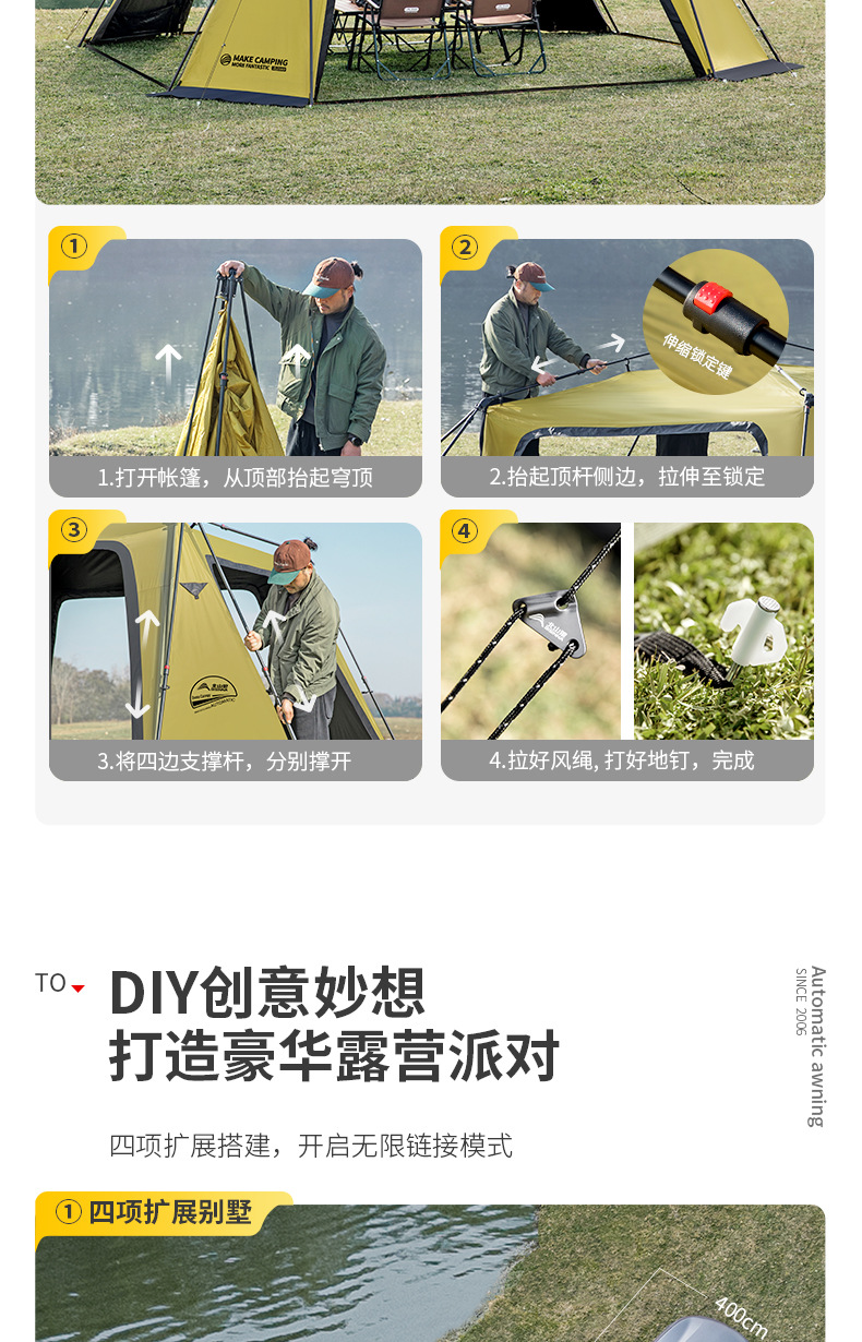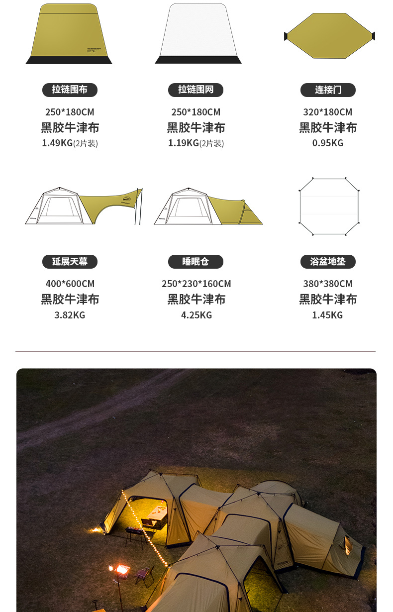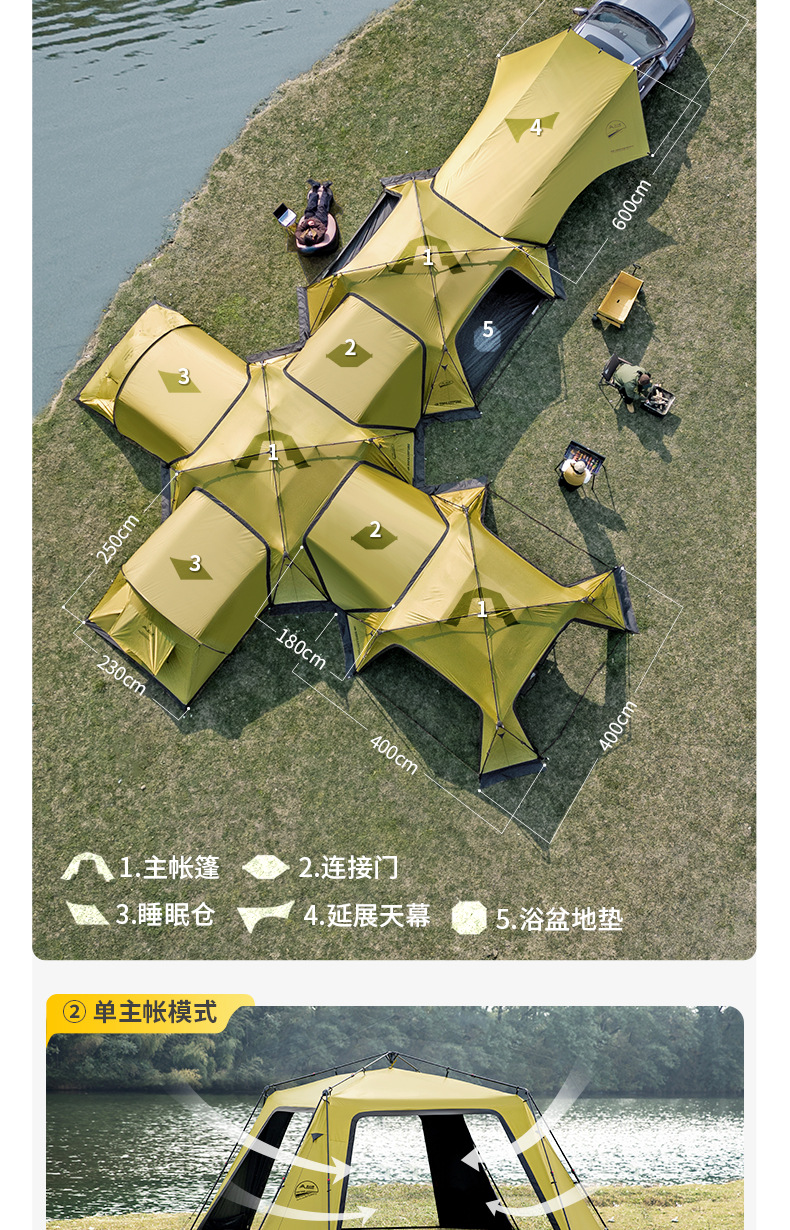 • 비닐 캐노피(머스타드 옐로우) + 수면실 + 확장 캐노피