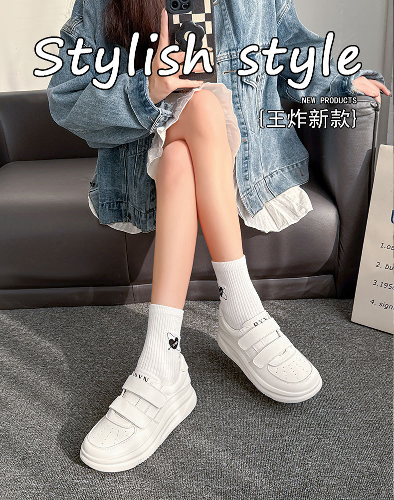벨크로 두꺼운 밑창 캐주얼 화이트 슈즈 여성의 2025 봄 새로운 도착 탑 레이어 Cowhide 보드 신발 정품 가죽 여성 신발스토어 가기