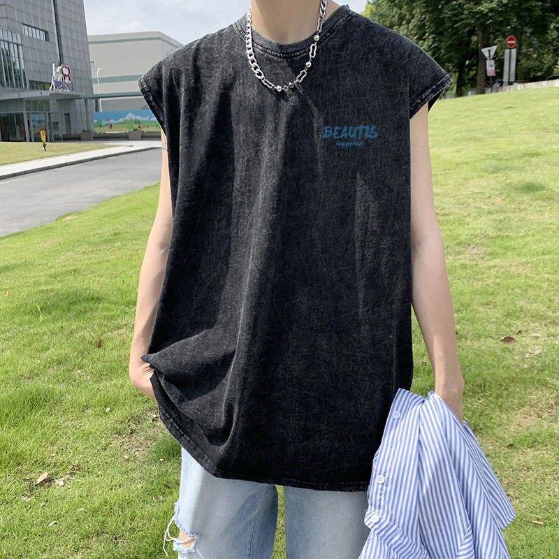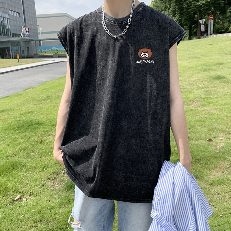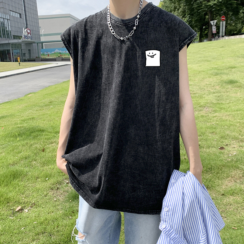 디아블로 인쇄 세탁 중고 소매 조끼 남성 패션 브랜드 스포츠 여름 유럽과 미국의 하이 스트리트 웨이슬 티셔츠스토어 가기