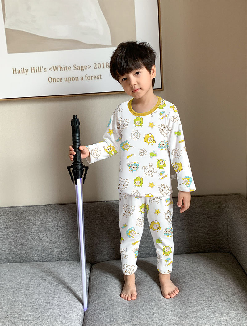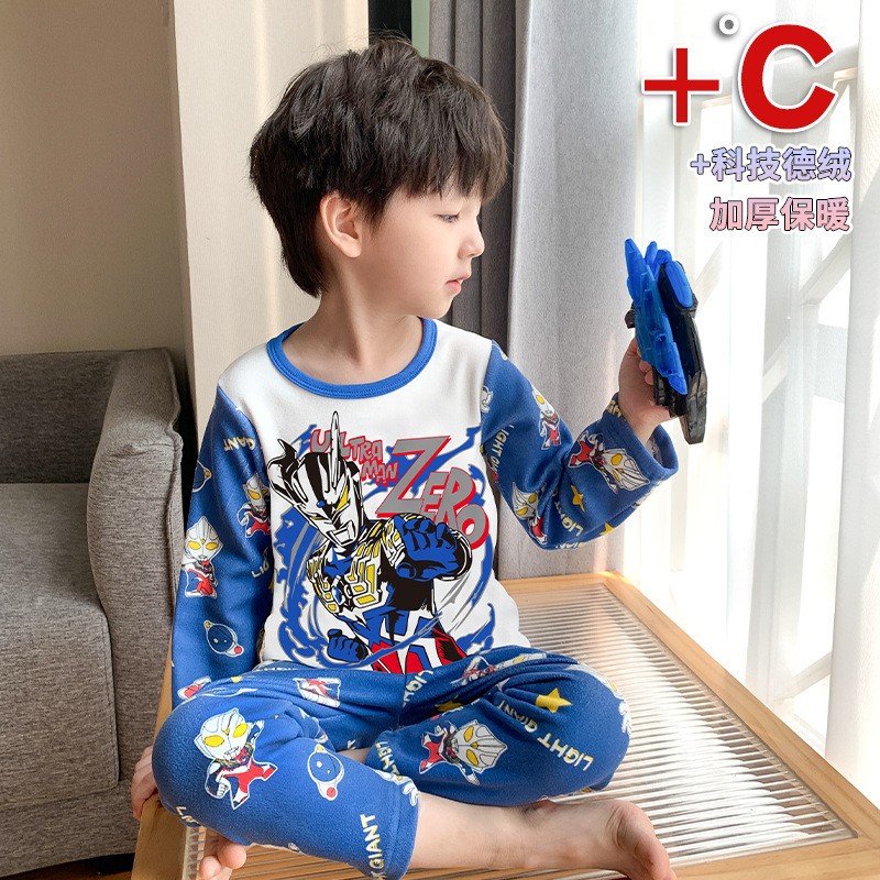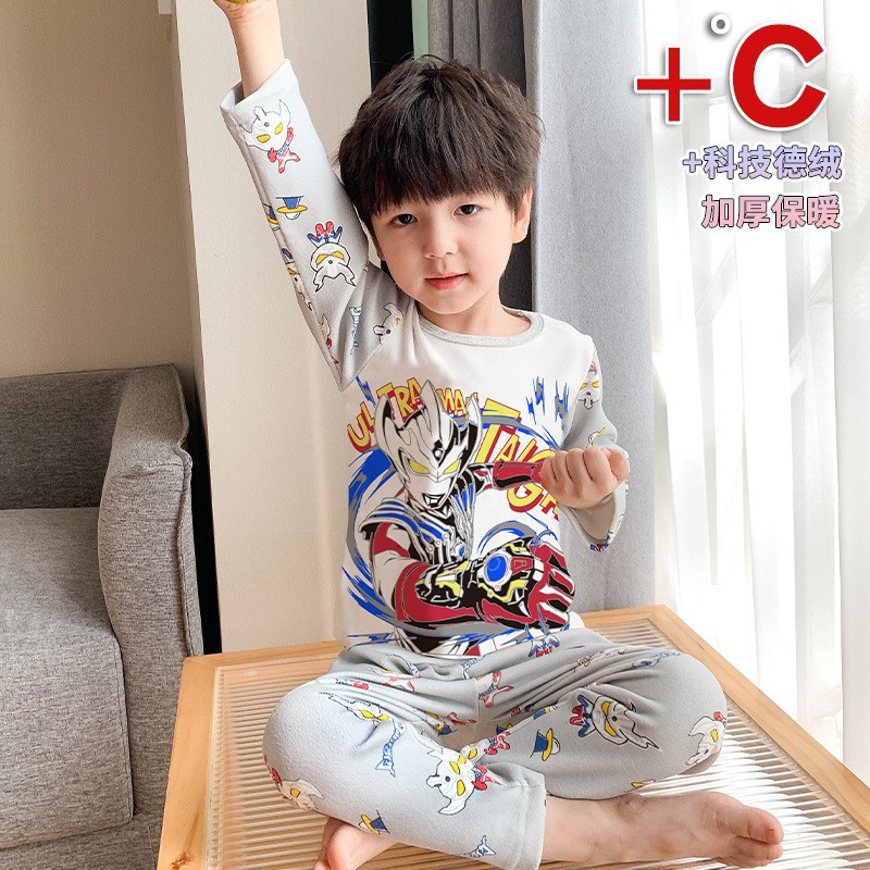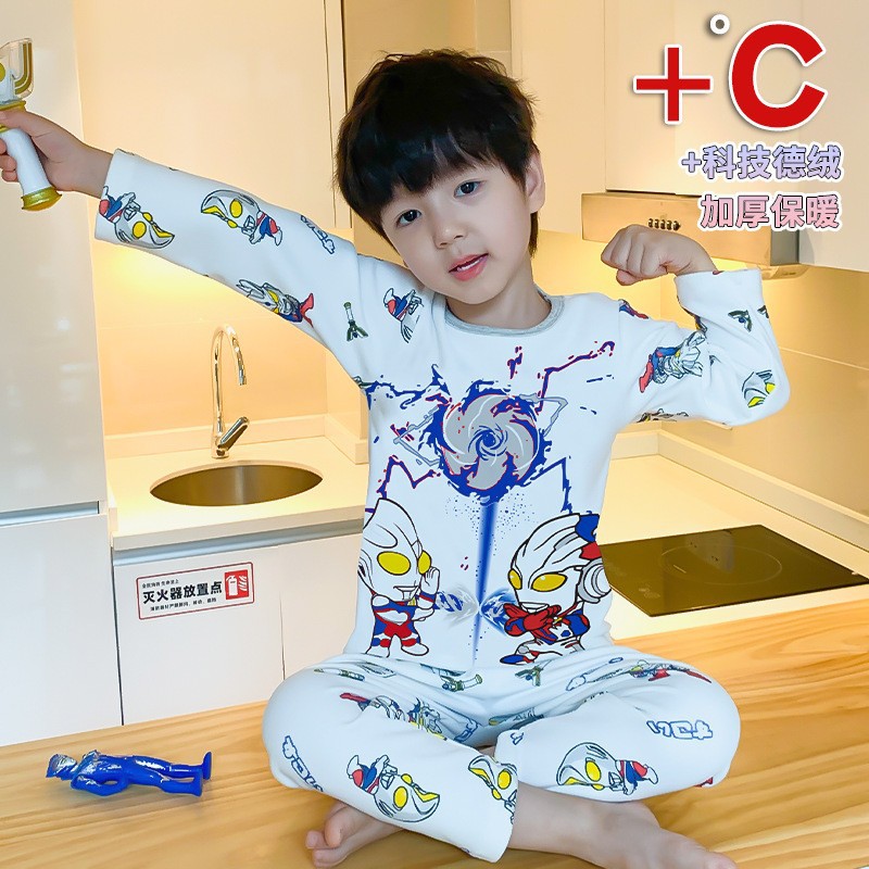 De Rong 어린이 열 속옷 세트 어린이 여자 소년의 가을 옷과 바지 두꺼운 가을과 겨울 아기 잠옷스토어 가기
