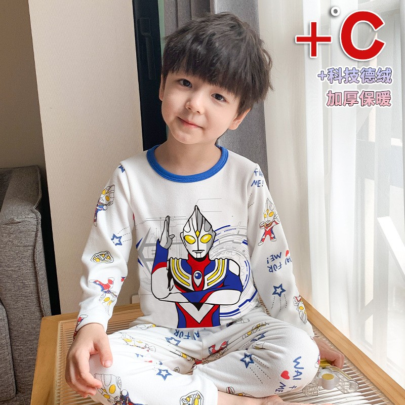 De Rong 어린이 열 속옷 세트 어린이 여자 소년의 가을 옷과 바지 두꺼운 가을과 겨울 아기 잠옷