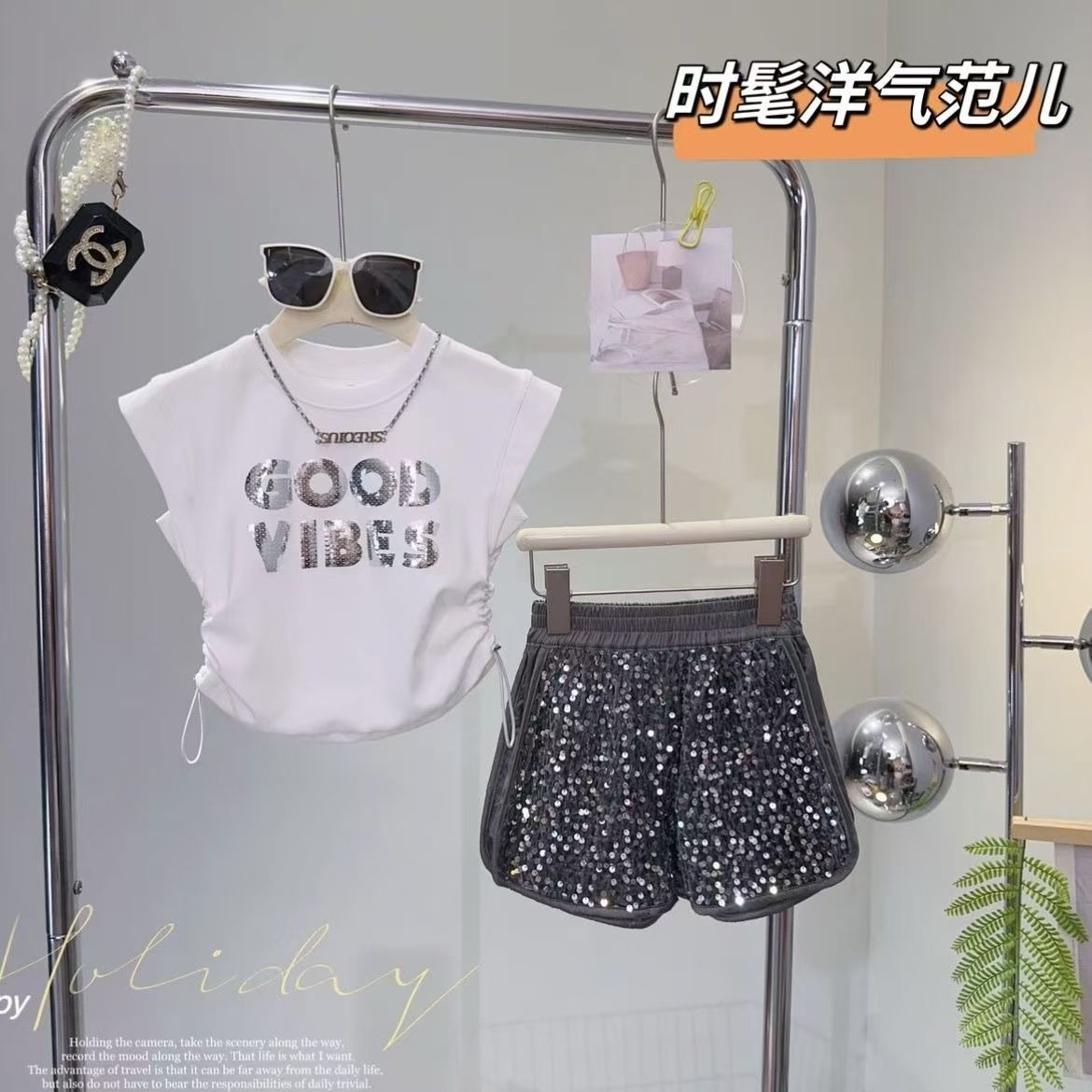 걸스 여름 새 투피스 세트 한국식 패셔너블 풀오버 민소매 조끼 세련된 올매치 쇼트 패션스토어 가기