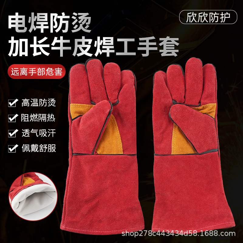 용접 안티-scald 확장 소 가죽 용접기 장갑 고온 안티-scald 난연 단열 보호 장갑 통기성 땀 흡수 편안함스토어 가기