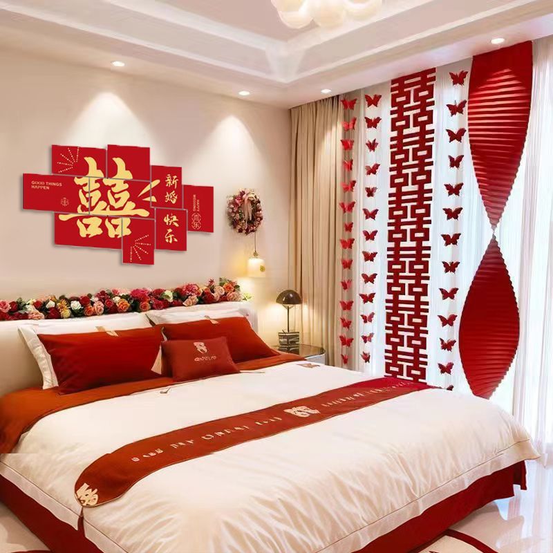 웨딩 룸 장식 배열 여자의 침실 배경 벽 남자의 새 방 커튼 매달려 천 배너 긴 행복한 캐릭터스토어 가기
