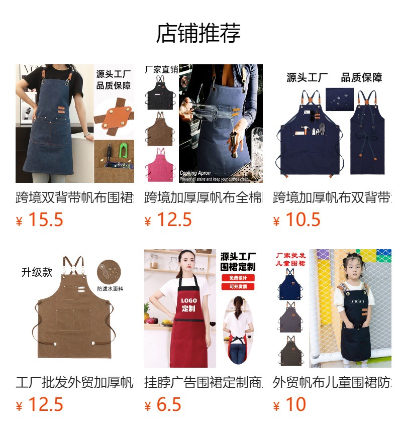 本厂是专业生产围裙20年的工厂,有着丰富的生产,定制经验,日产量8000+ 全套的生产设备,定制印字刺绣一站式服务 。 来样定制,代加工,一件代发,满足多样需求 跨境电商专属:opp包装,装箱,贴标等服务。 让您售后无忧,快速响应,贴心服务一路相伴。