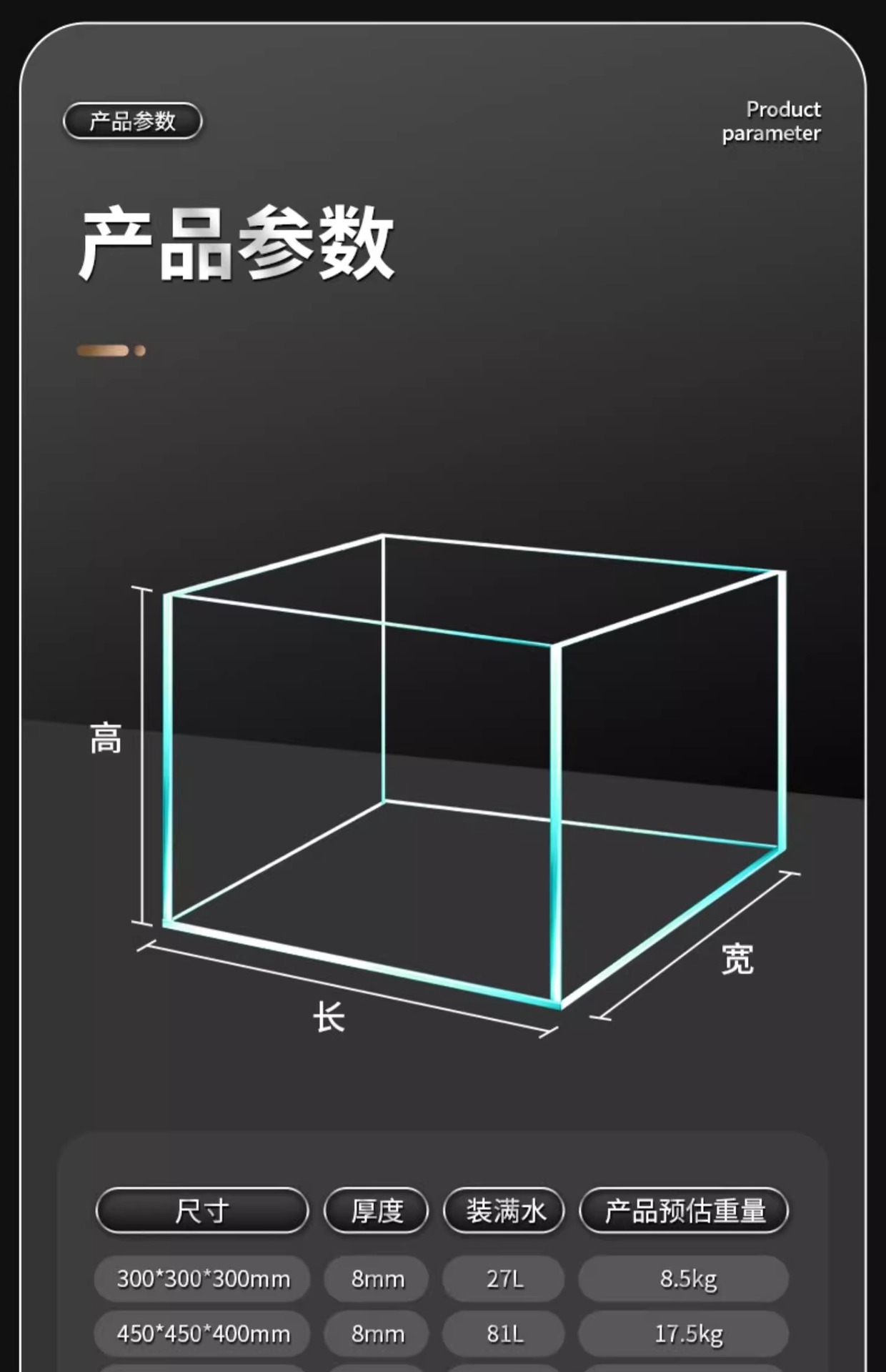 • 8mm50*50*40 금붕어 탱크 세트(대형 벽걸이 필터 + 24W 다운라이트 포함)