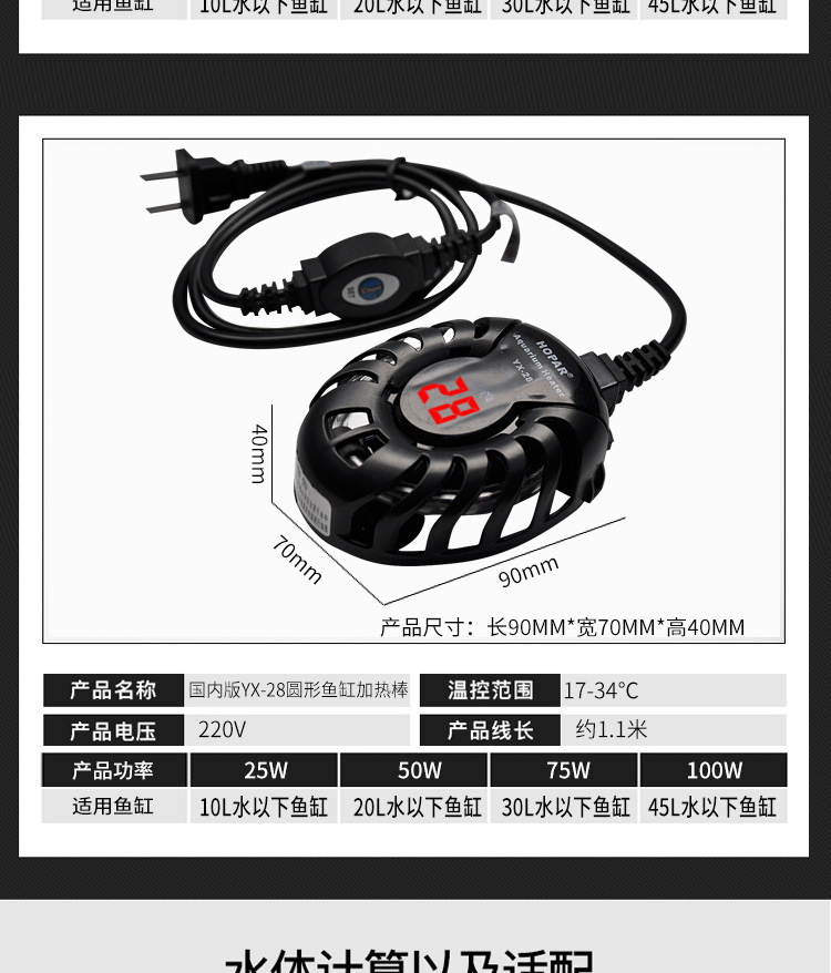 以下功率建议是针对南方,为了保证恒温效果,气温低于5℃的地区,建议选购大一号的功率.