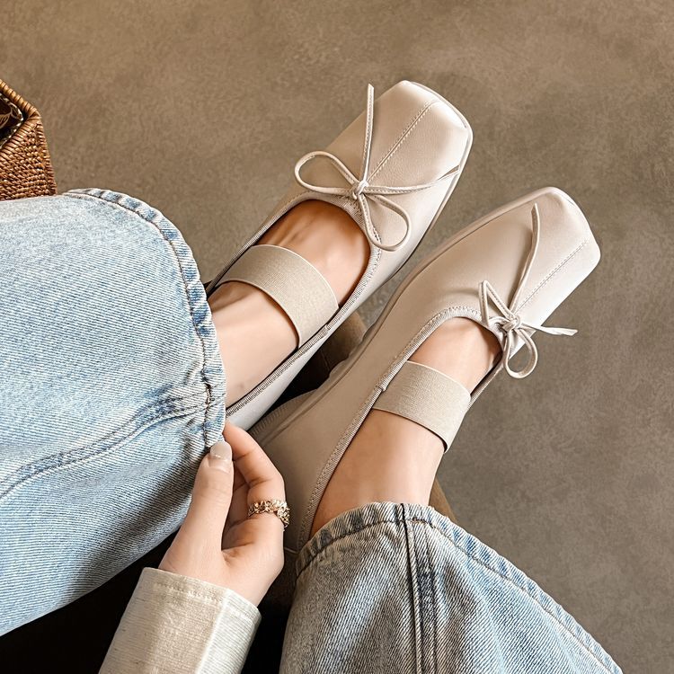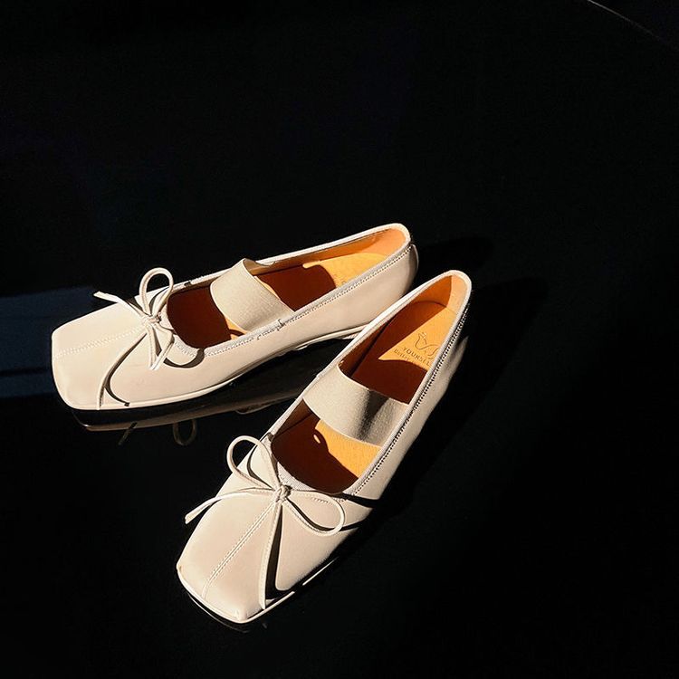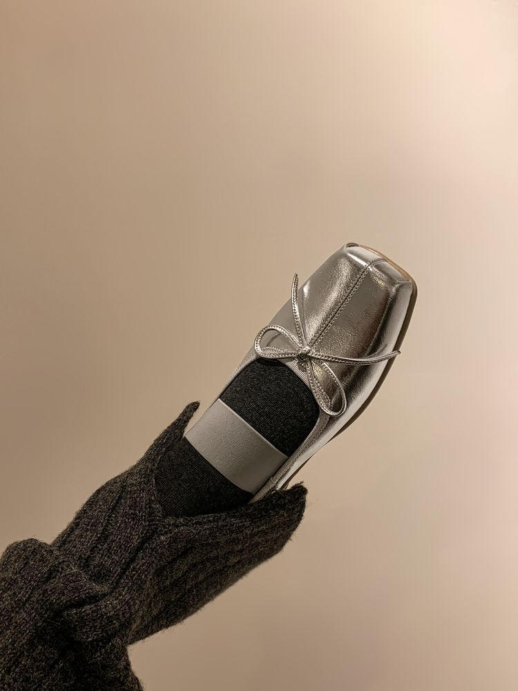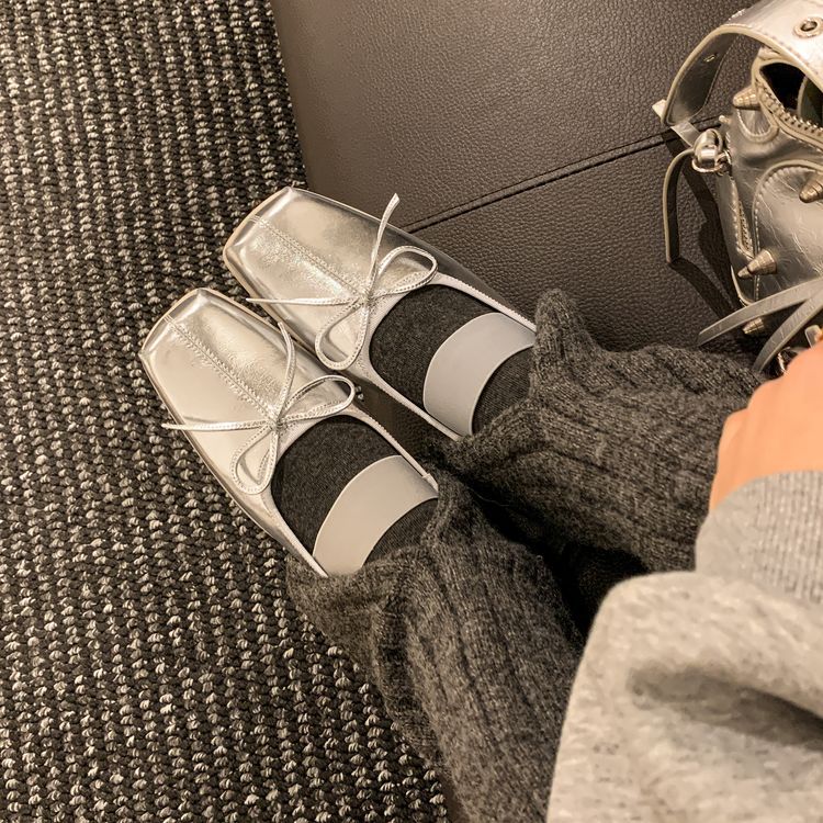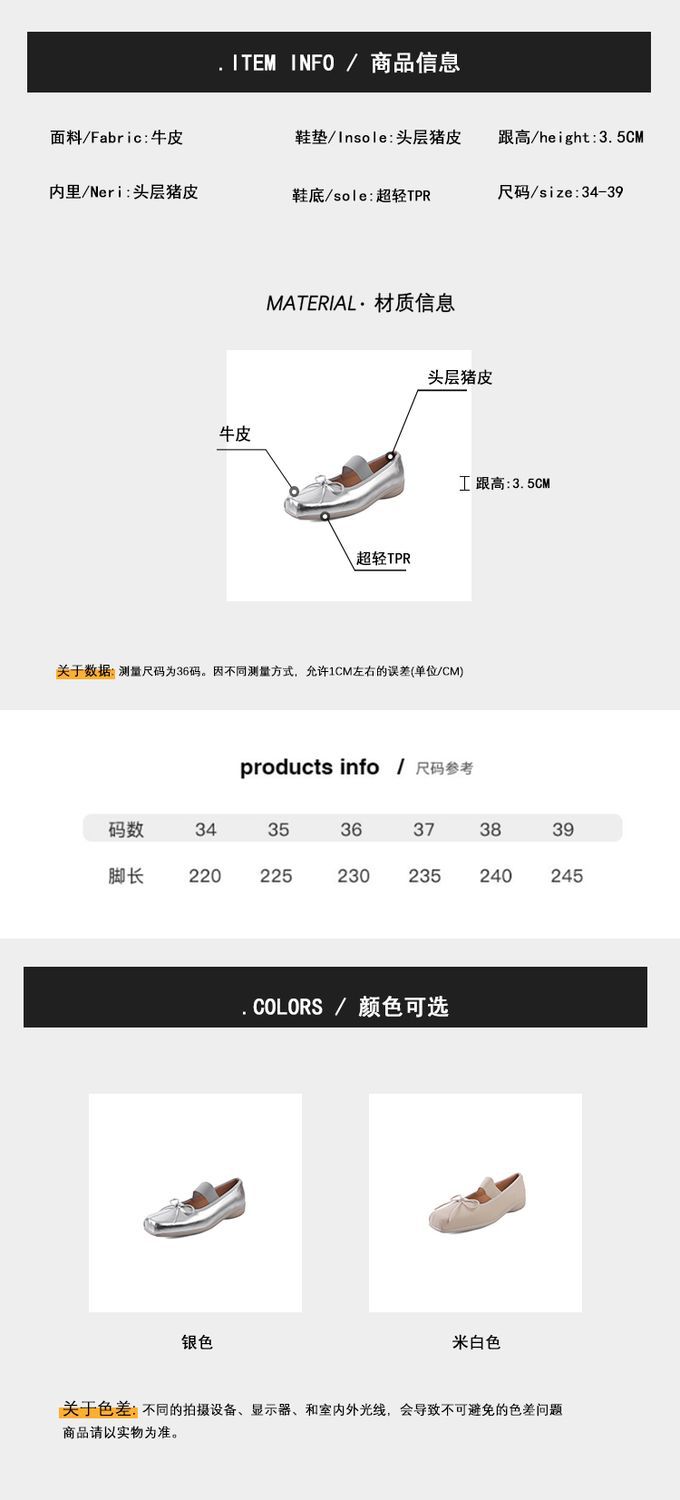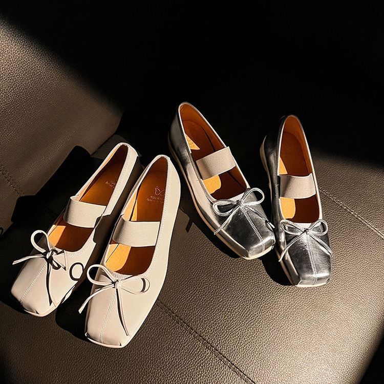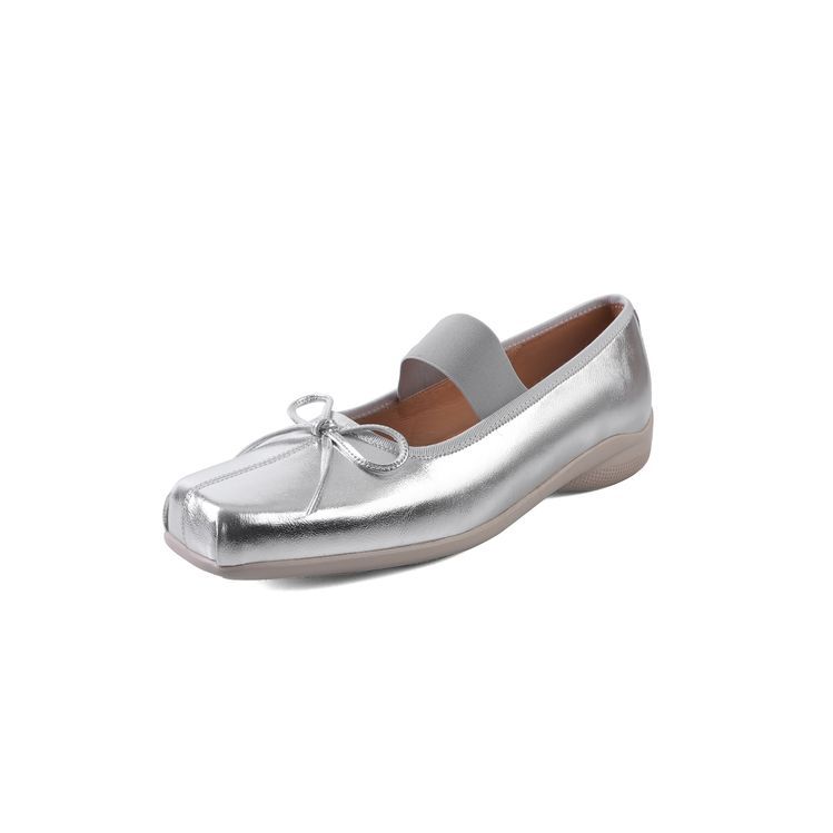 실버 소 가죽 발레 신발 여성용 메리 제인 신발 봄 새로운 전체 가죽 스퀘어 헤드 활 얕은 입 싱글 레이어 신발스토어 가기