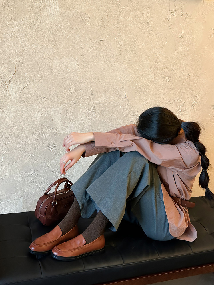 소 가죽 로퍼의 첫 번째 레이어는 여성용 작은 가죽 신발이 전체 가죽 플랫 힐 싱글 레이어 신발 부드러운 바닥 여성 단층 신발 조수 내부 및 외부에 새로운 봄
