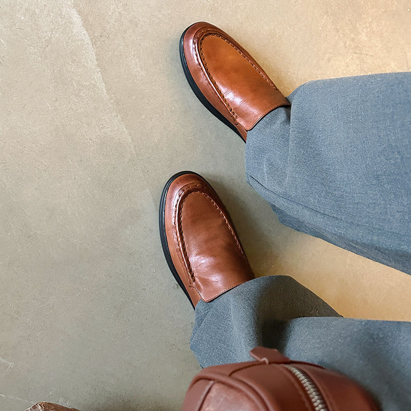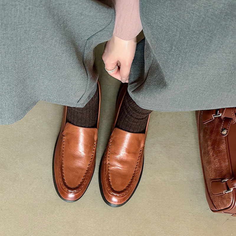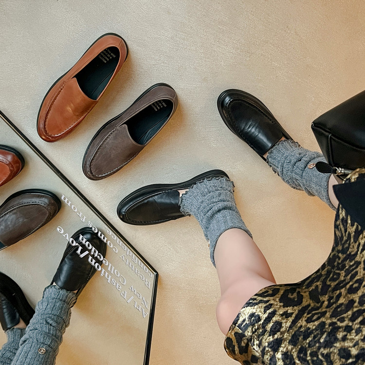 소 가죽 로퍼의 첫 번째 레이어는 여성용 작은 가죽 신발이 전체 가죽 플랫 힐 싱글 레이어 신발 부드러운 바닥 여성 단층 신발 조수 내부 및 외부에 새로운 봄스토어 가기