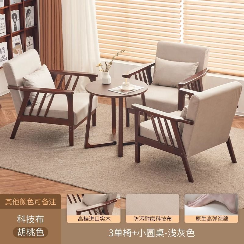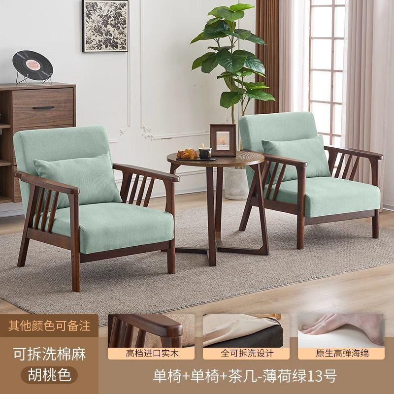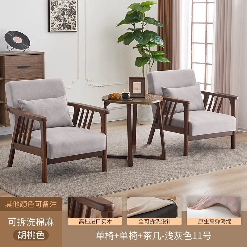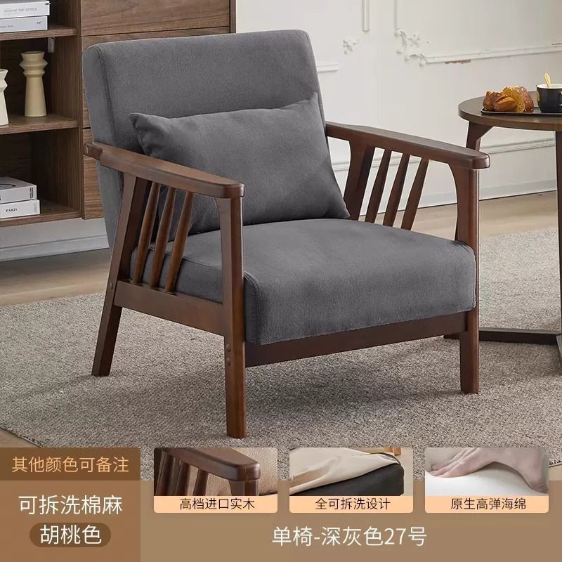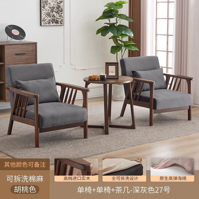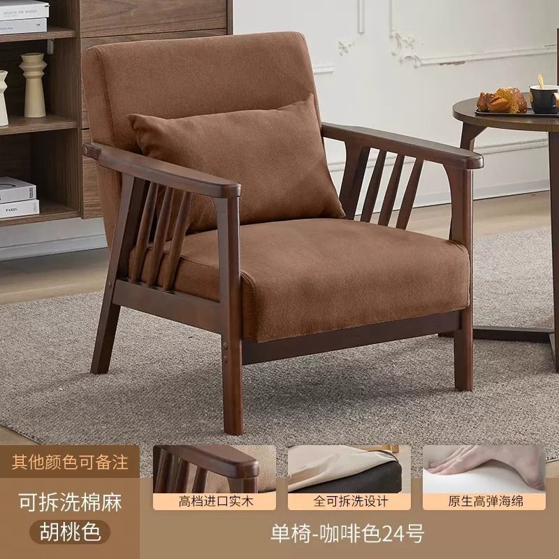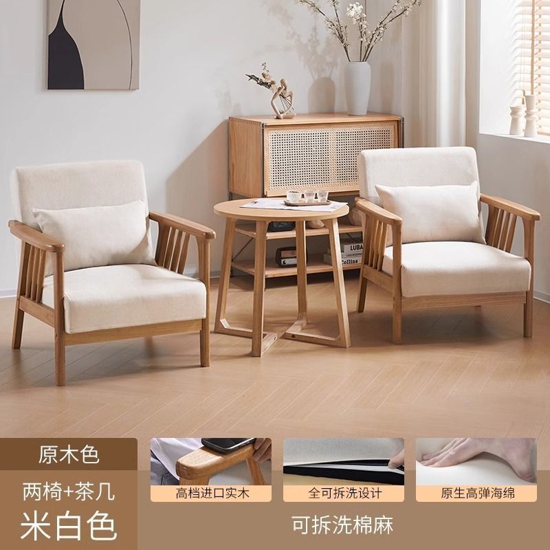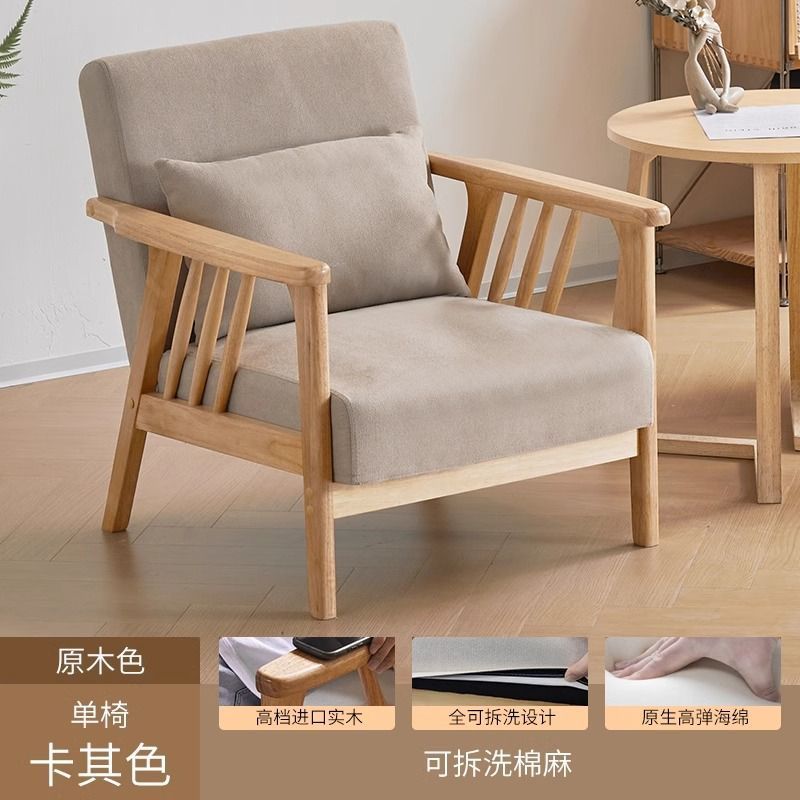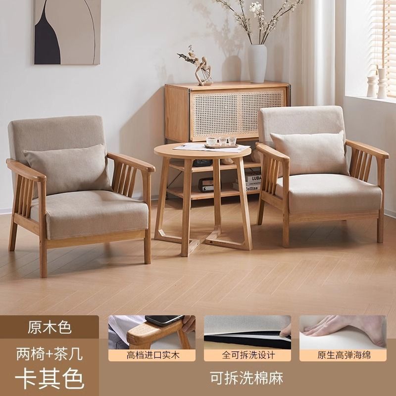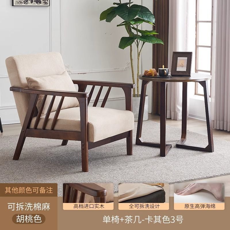 싱글 소파 의자 솔리드 우드 레저 의자 현대 간단한 거실 발코니 홈스테이 호텔 테이블과 의자 일본식 홈스토어 가기