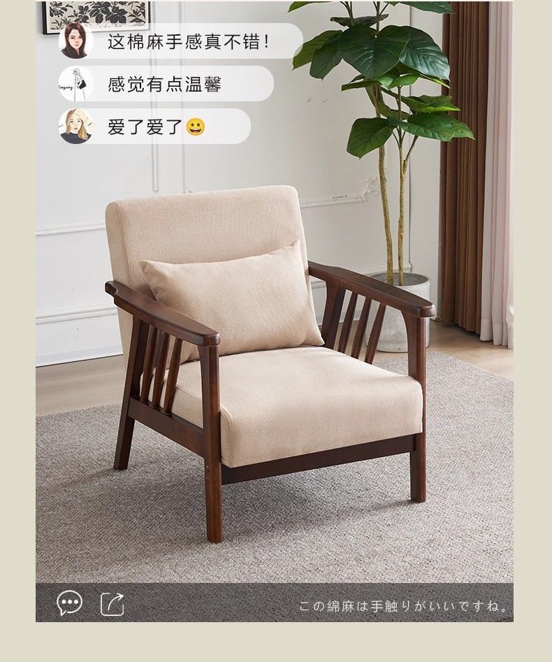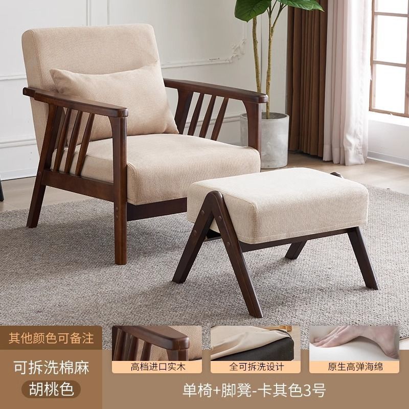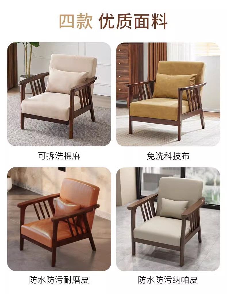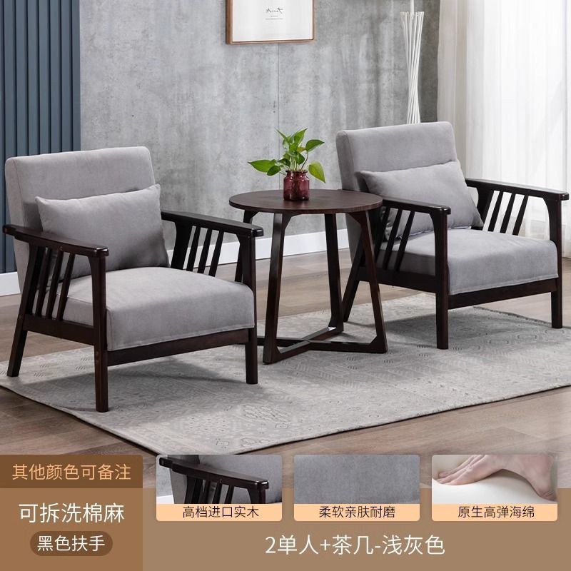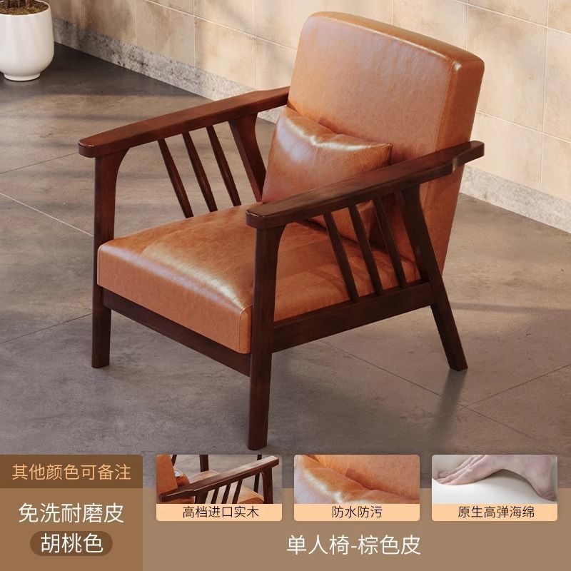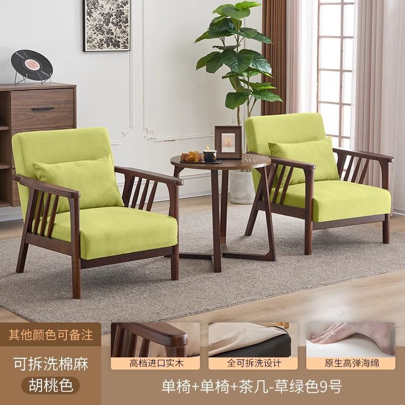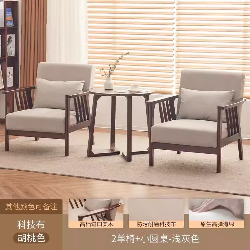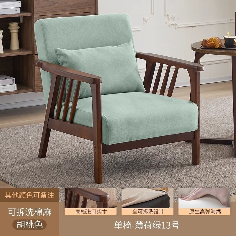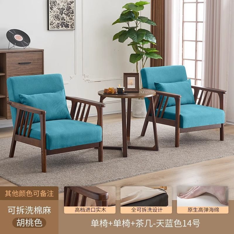 싱글 소파 의자 솔리드 우드 레저 의자 현대 간단한 거실 발코니 홈스테이 호텔 테이블과 의자 일본식 홈스토어 가기