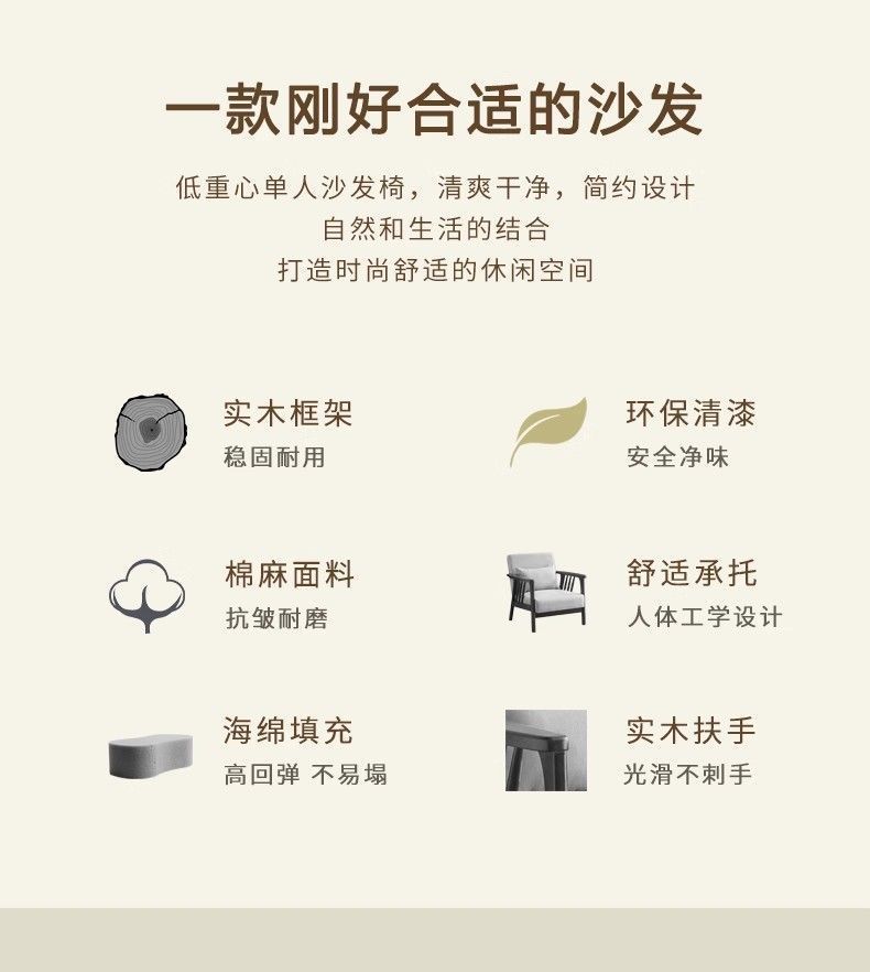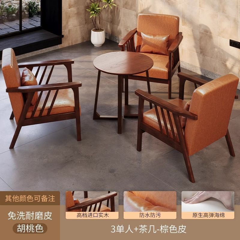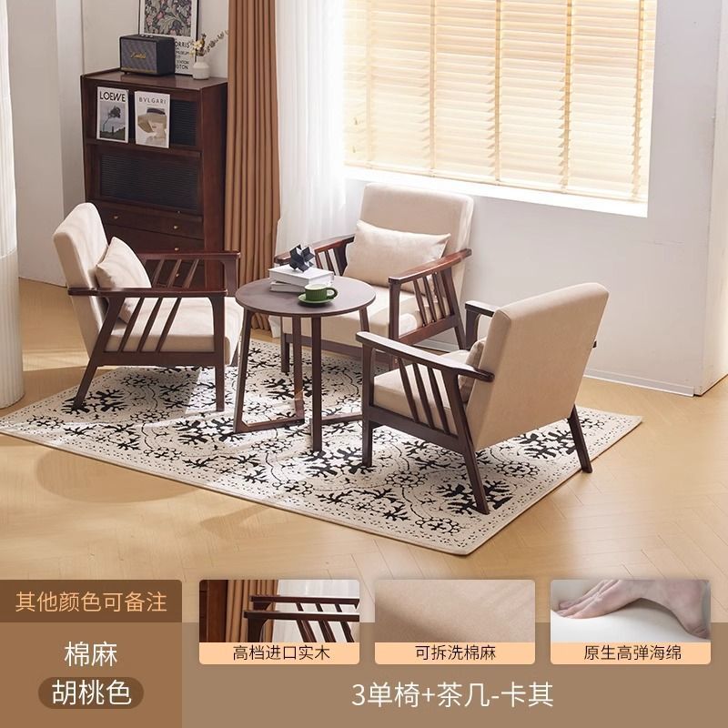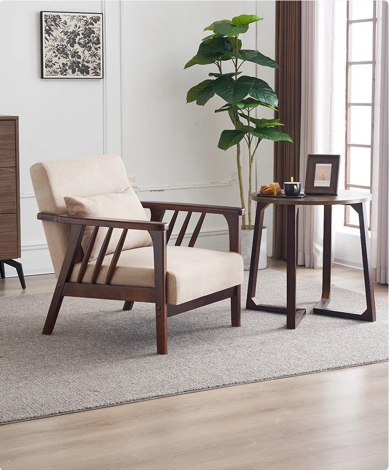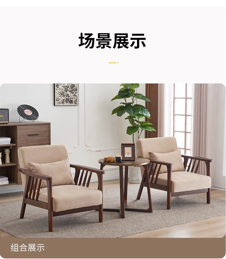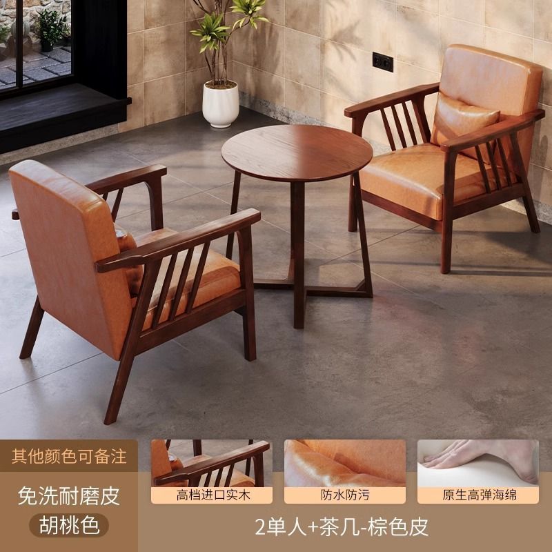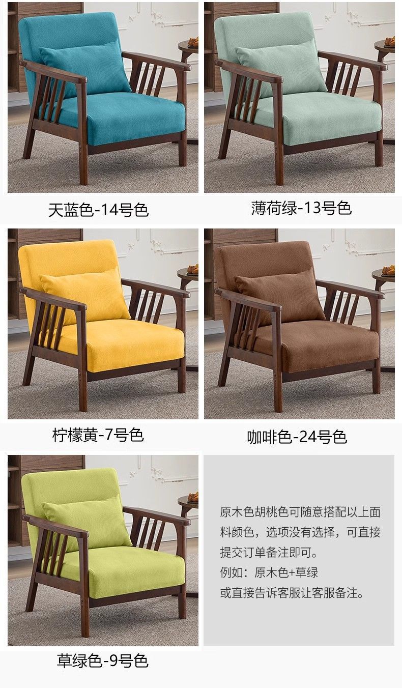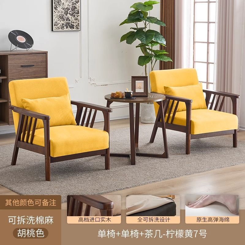 싱글 소파 의자 솔리드 우드 레저 의자 현대 간단한 거실 발코니 홈스테이 호텔 테이블과 의자 일본식 홈스토어 가기