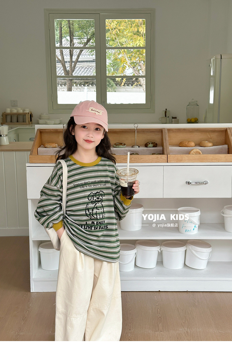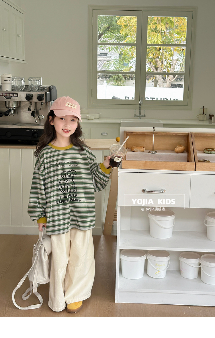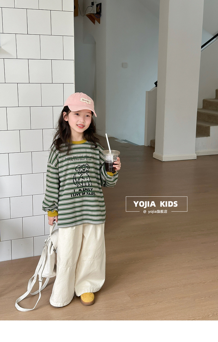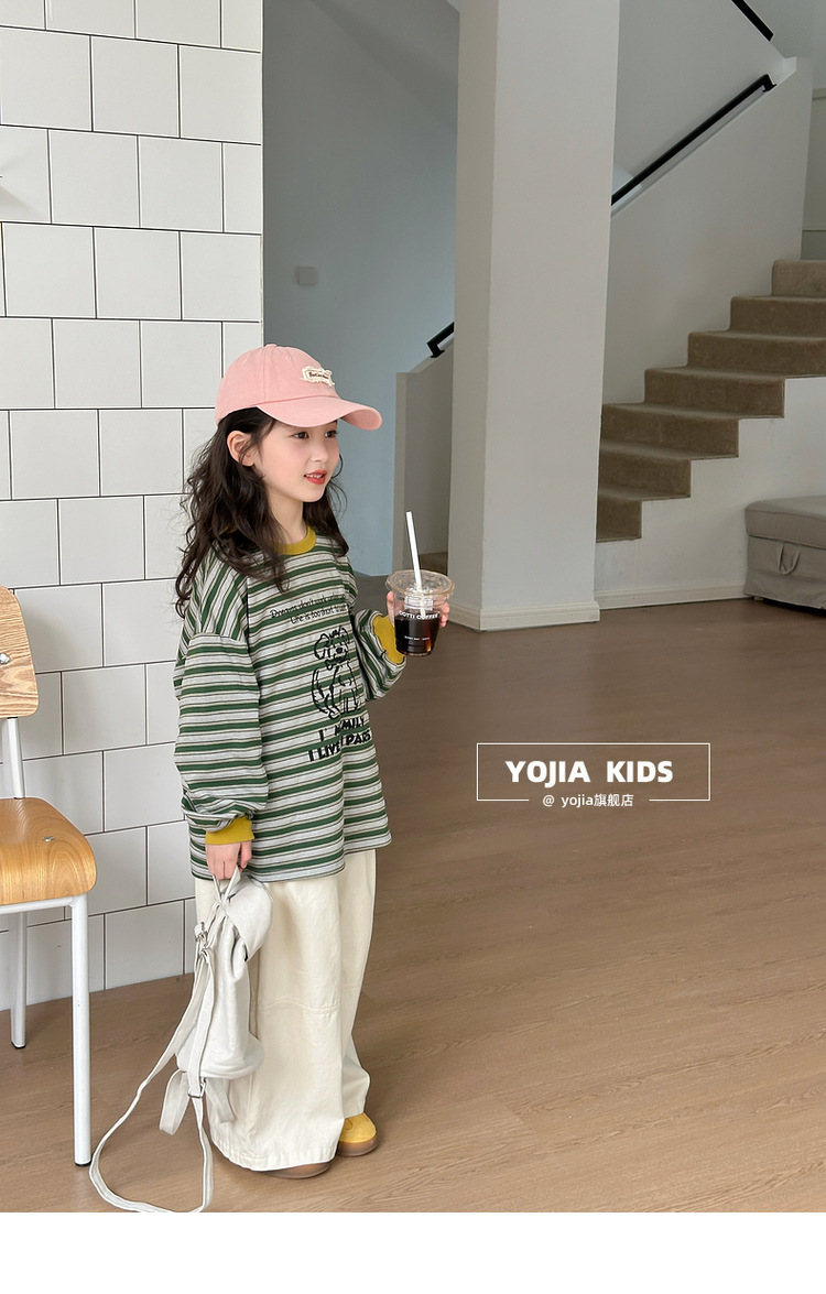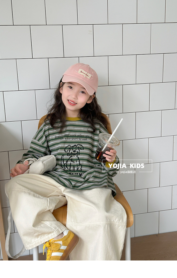 YOJIA 여자 스트라이프 티셔츠 봄 2025 새로운 한국 캐주얼 라운드 넥 아동복 어린이 긴소매 탑 봄스토어 가기