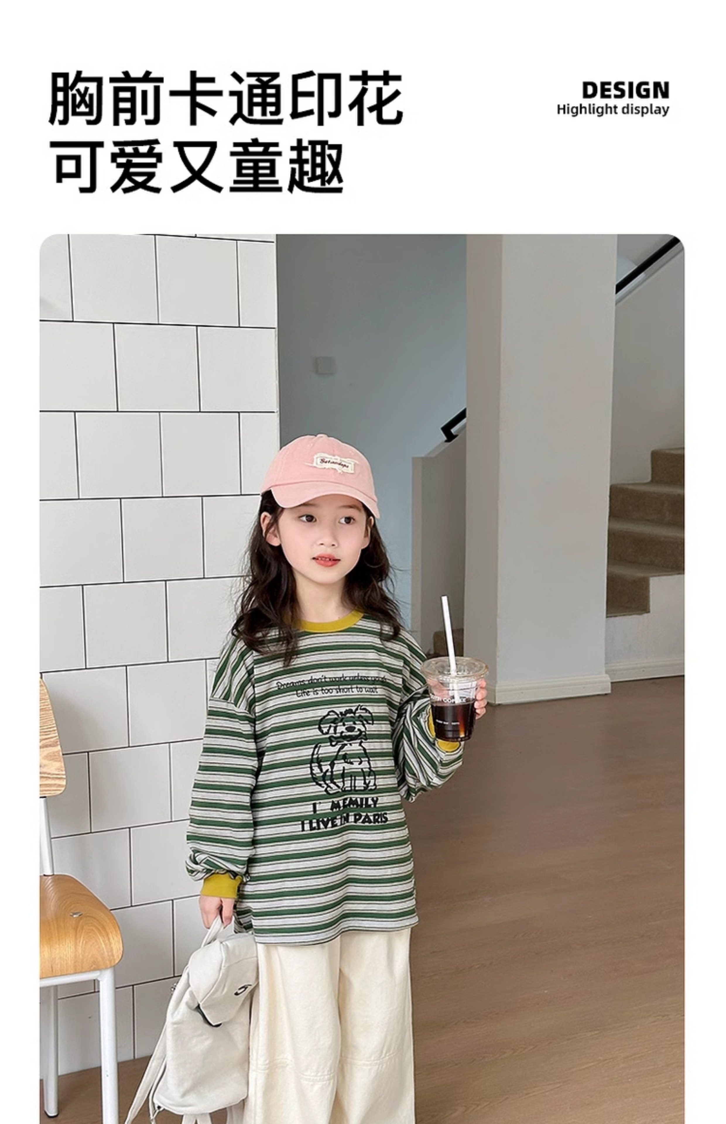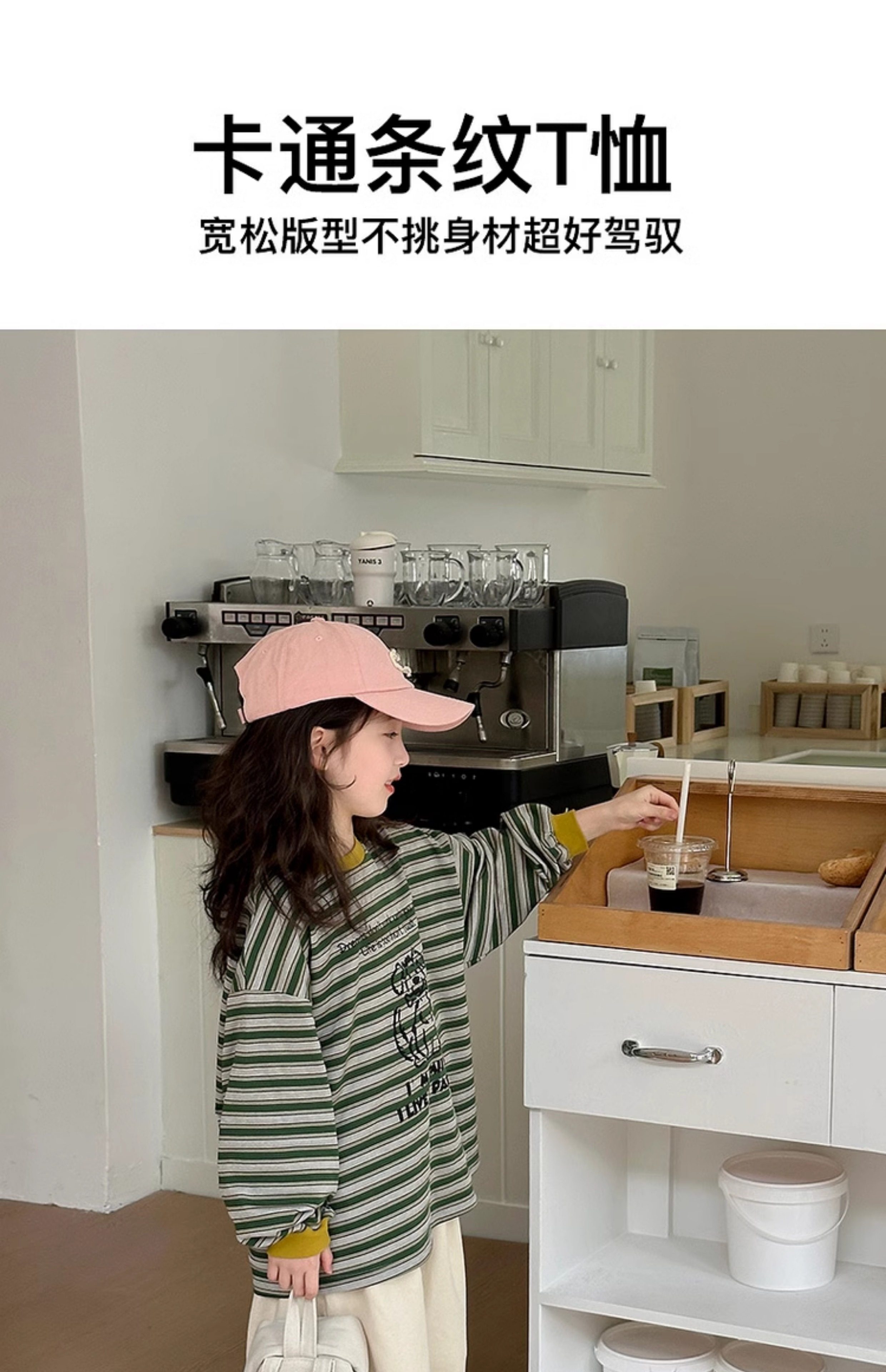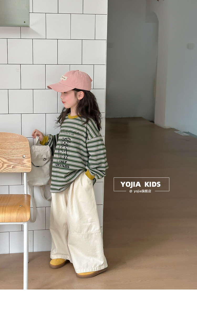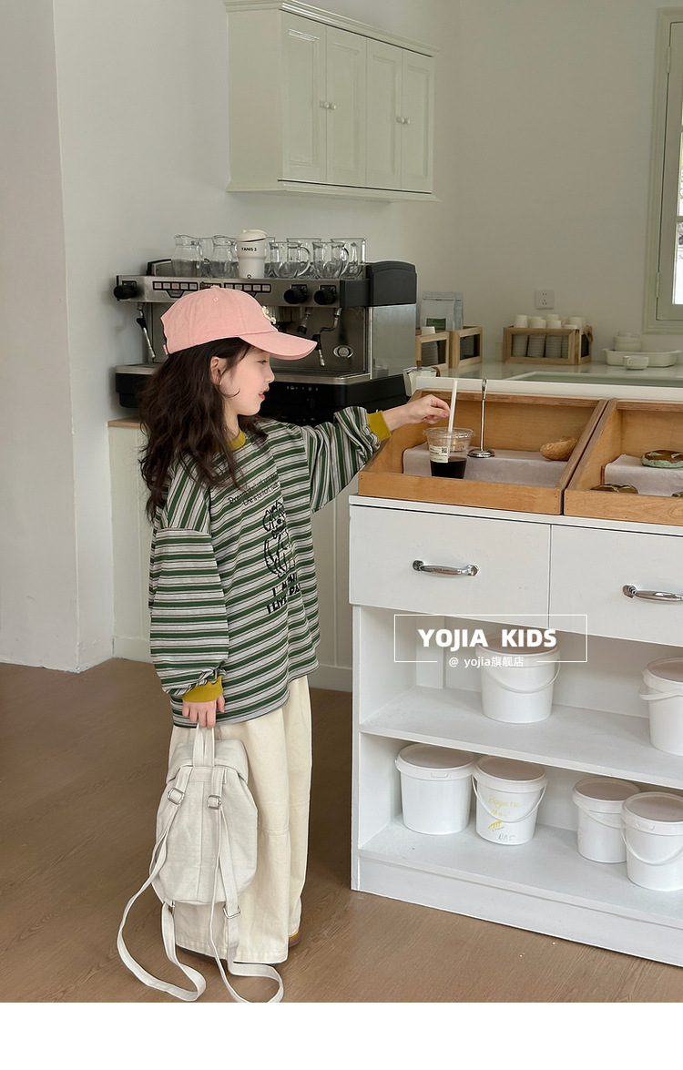 YOJIA 여자 스트라이프 티셔츠 봄 2025 새로운 한국 캐주얼 라운드 넥 아동복 어린이 긴소매 탑 봄스토어 가기