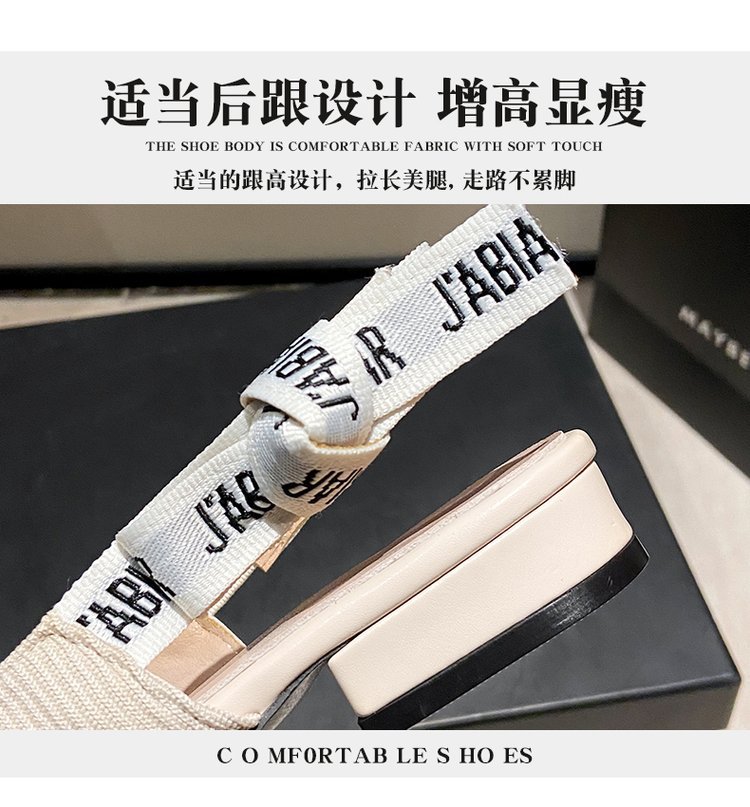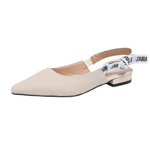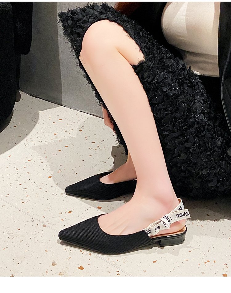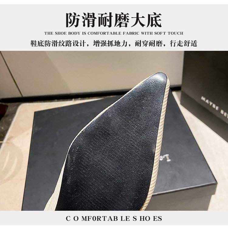 2025 여성을위한 활과 활 니트 스트라이프 뾰족한 얕은 입 빈 샌들이 달린 새로운 도착 로우 힐 신발스토어 가기
