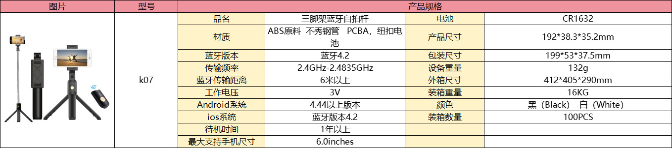 K07 휴대 전화 셀카 스틱 새로운 블루투스 원격 제어 야외 편리한 통합 다기능 라이브 촬영 삼각대스토어 가기