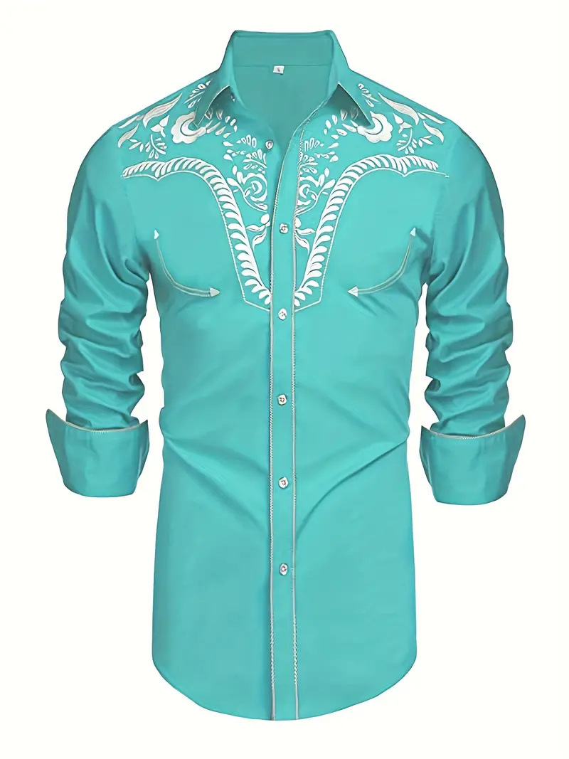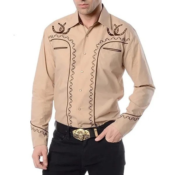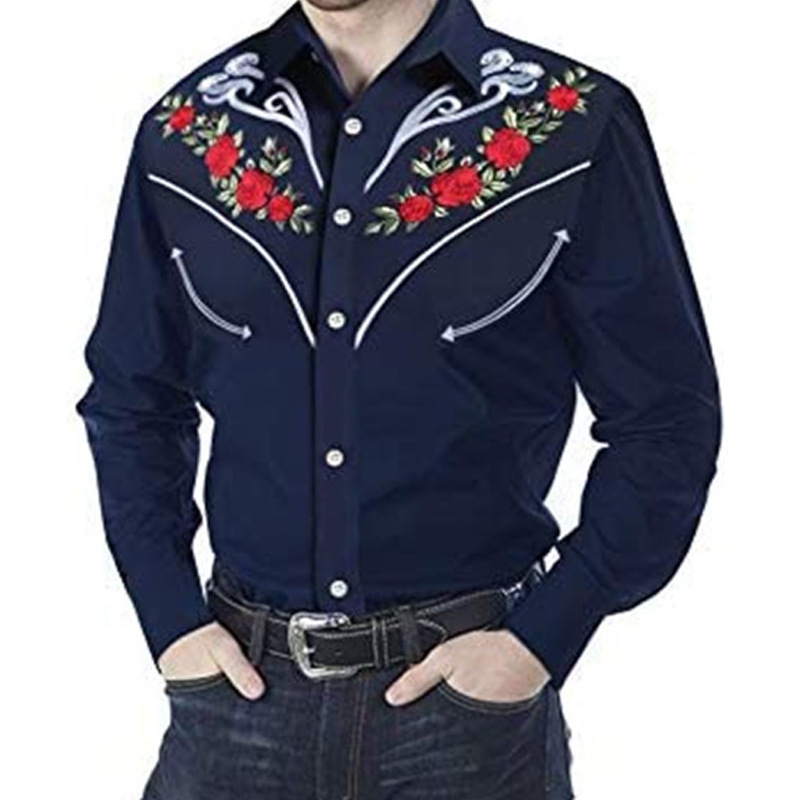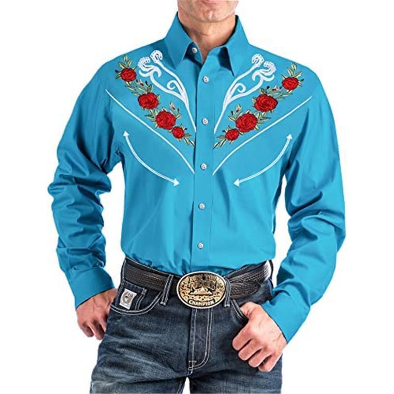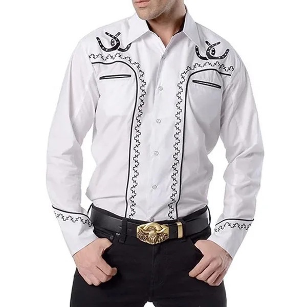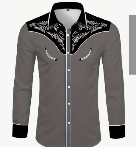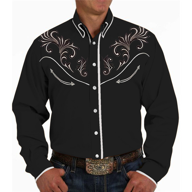 2024 크로스 국경 봄과 가을 남성 패션 3D 프린트 셔츠 미국 서양 스타일 인쇄 느슨한 긴 소매 셔츠스토어 가기