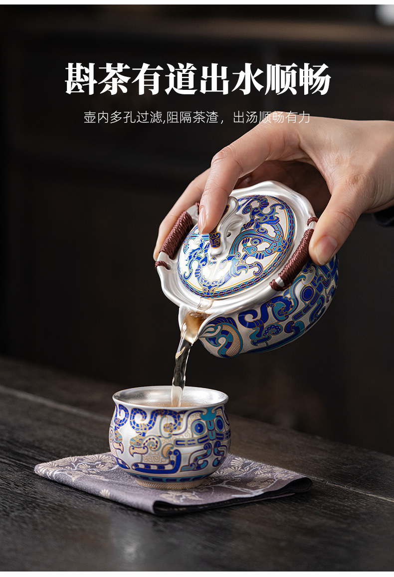 실버 도금 된 주전자 하이 엔드 라이트 럭셔리 가정용 핸드 헬드 팟 찻잔 싱글 1 인 안티 스케일링 쿵푸 티 세트 커버 보울 티 메이커