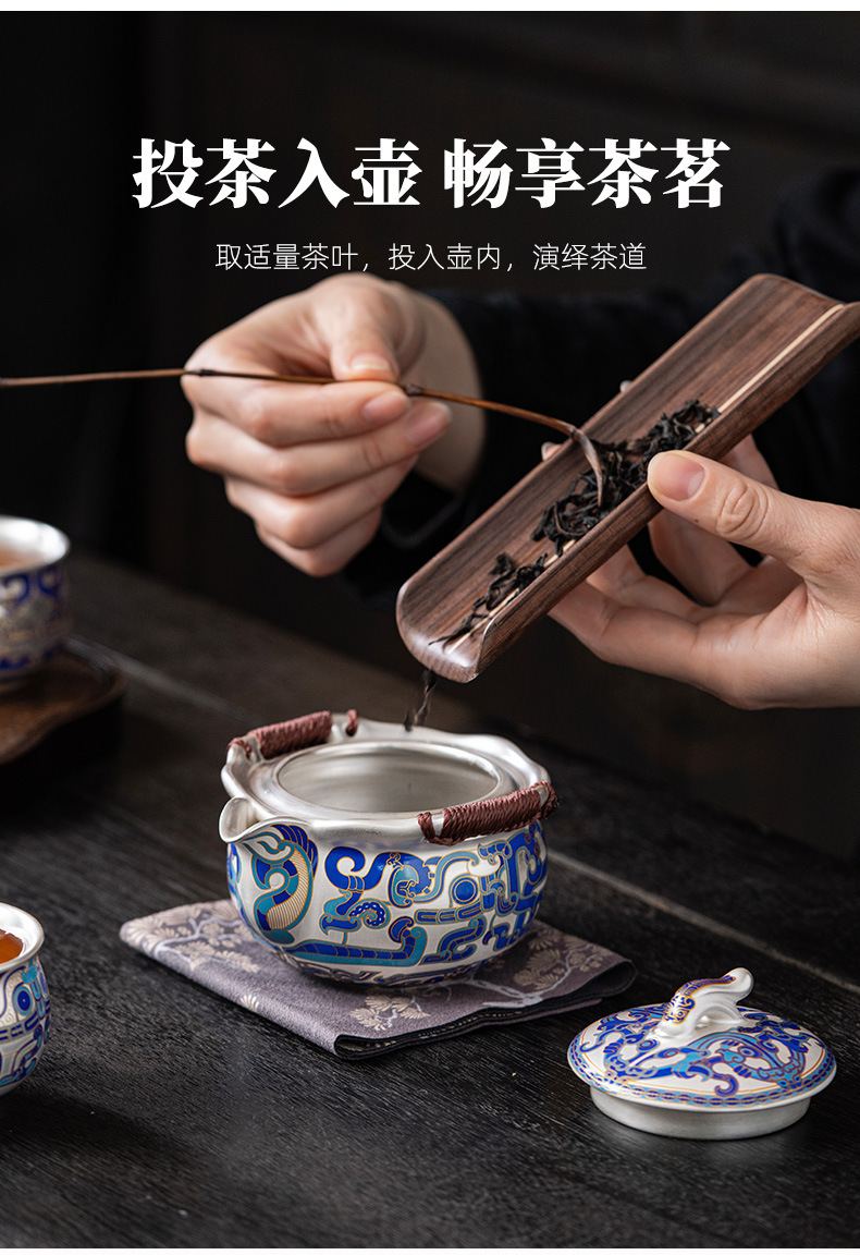 실버 도금 된 주전자 하이 엔드 라이트 럭셔리 가정용 핸드 헬드 팟 찻잔 싱글 1 인 안티 스케일링 쿵푸 티 세트 커버 보울 티 메이커스토어 가기