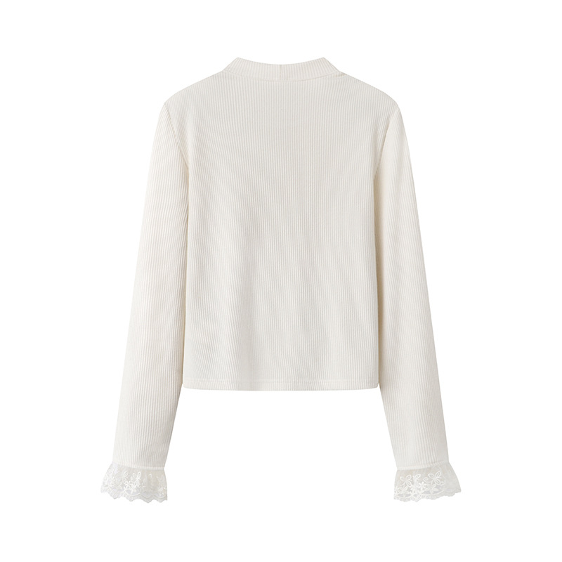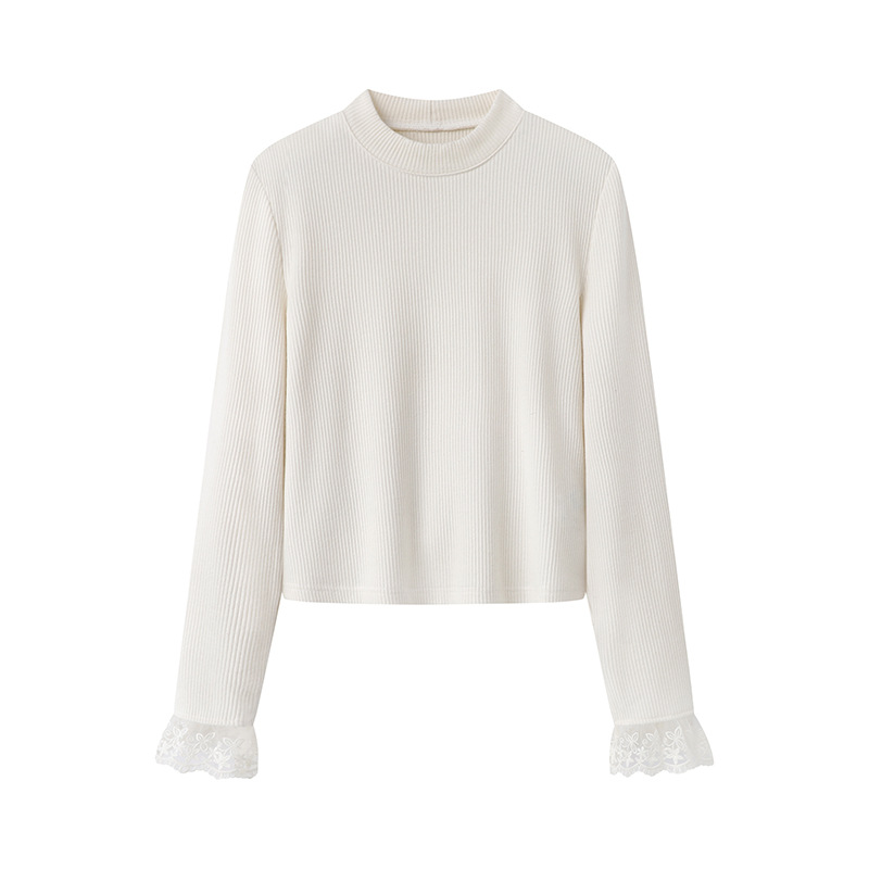 레이스 세미 하이 칼라 긴팔 티셔츠 바닥 셔츠 여성용 2024 가을 및 겨울 새로운 인테리어 슬림 핏 탑 KSD2412008스토어 가기