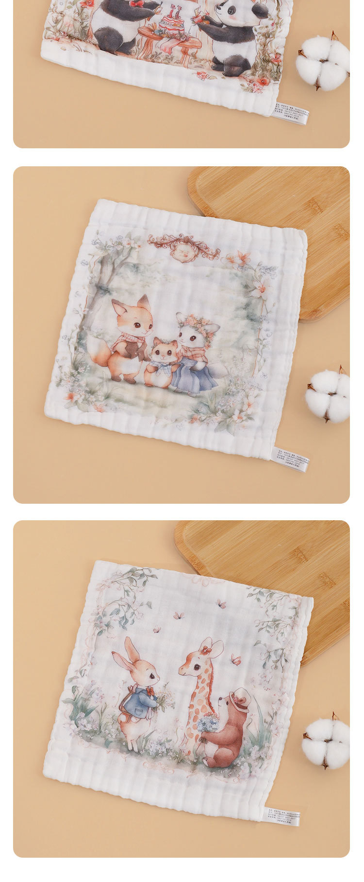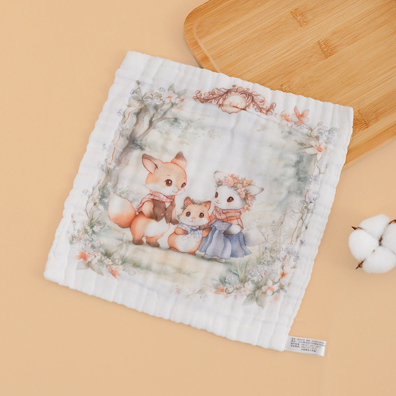 • 6겹 거즈 사각 스카프 - 동물 결혼식