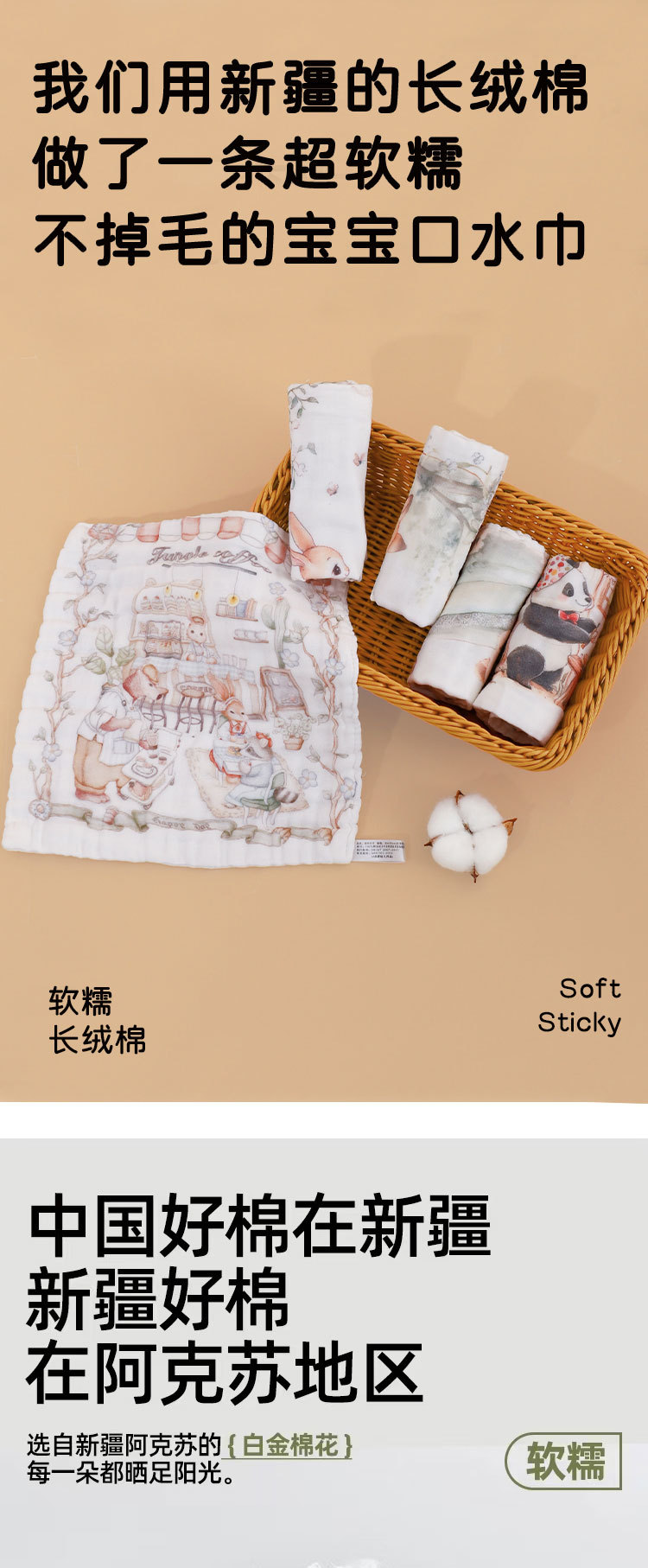• 6겹 거즈 사각 스카프 - 생일 팬더