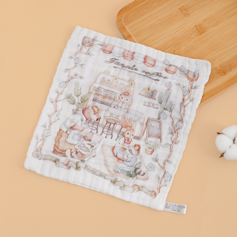 • 6겹 거즈 사각 스카프 - 동물 레스토랑