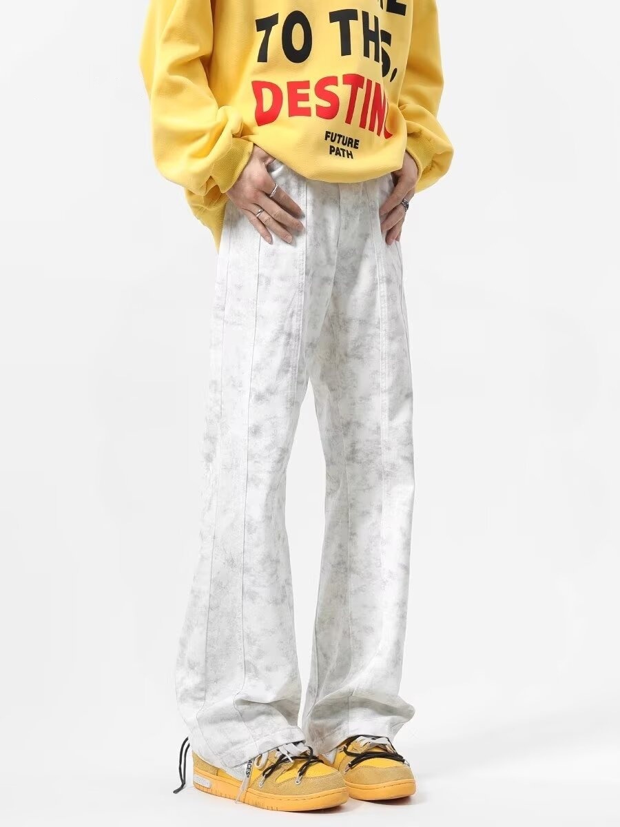 하이 스트리트 화이트 타이-다이 청바지 남성 트렌디 브랜드 캐주얼 올 매치 틈새 디자인 센스 더티 마이크로 스트레이트 바지스토어 가기