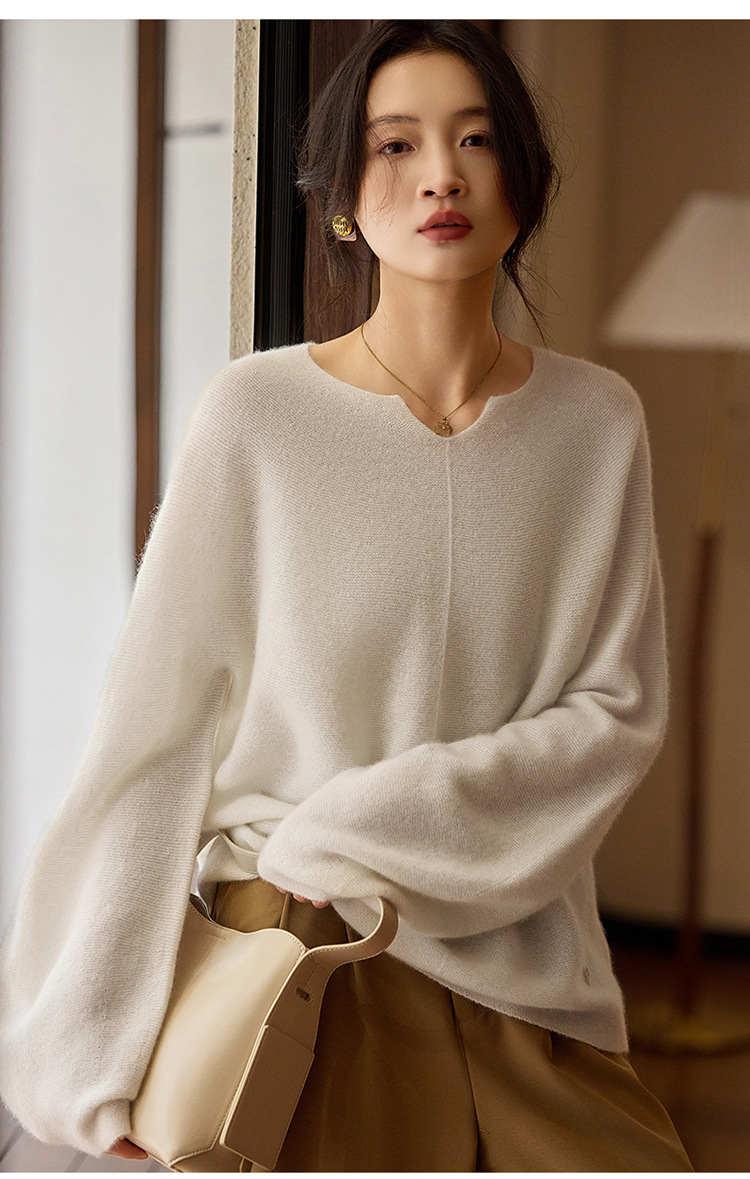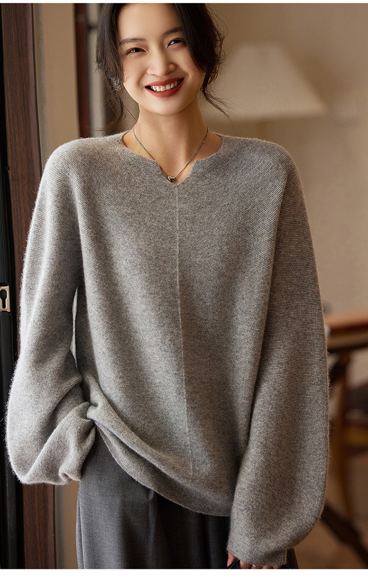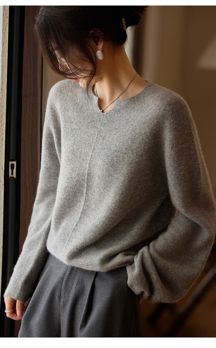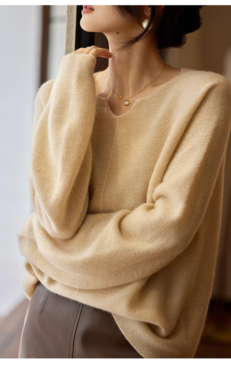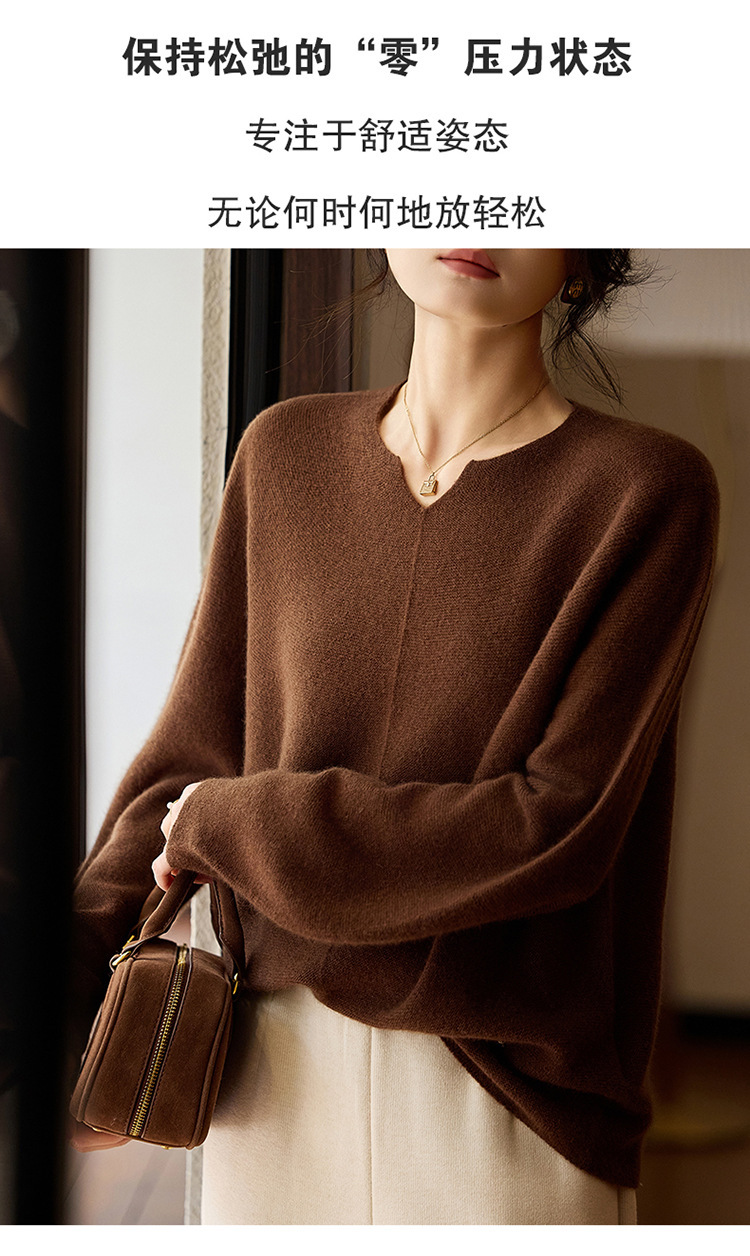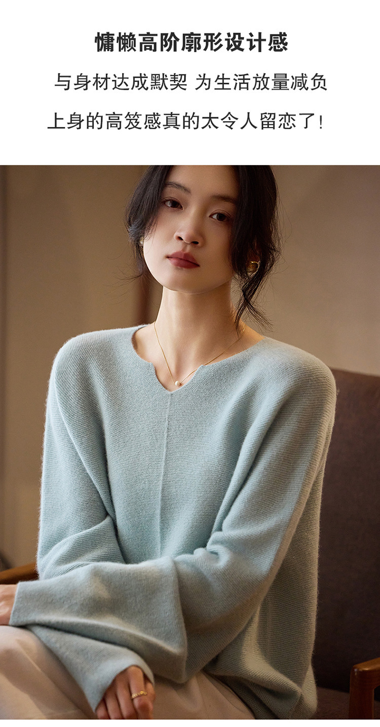 이른 봄 탑 여성의 새로운 게으른 스타일 V 넥 니트 긴팔 단색 느슨한 풀오버 소프트 왁스베이스 울 스웨터스토어 가기