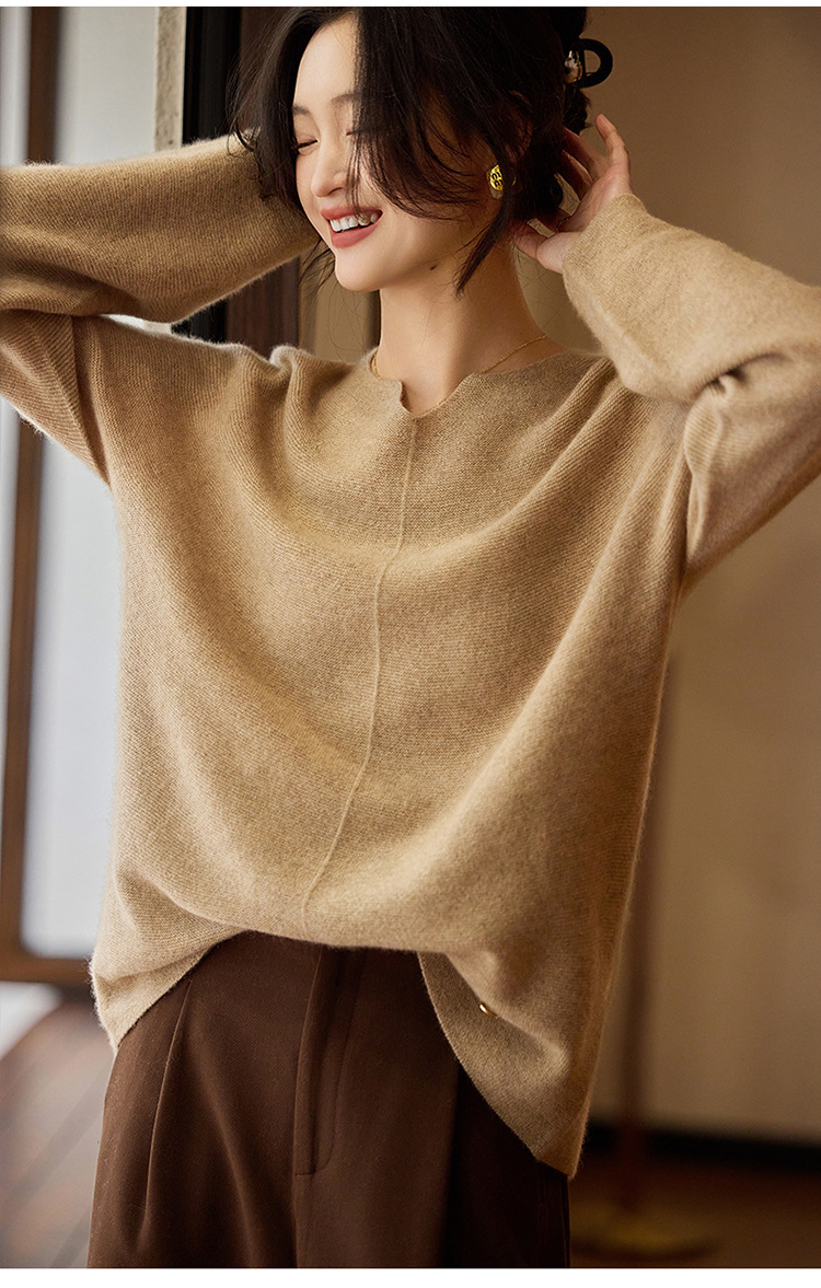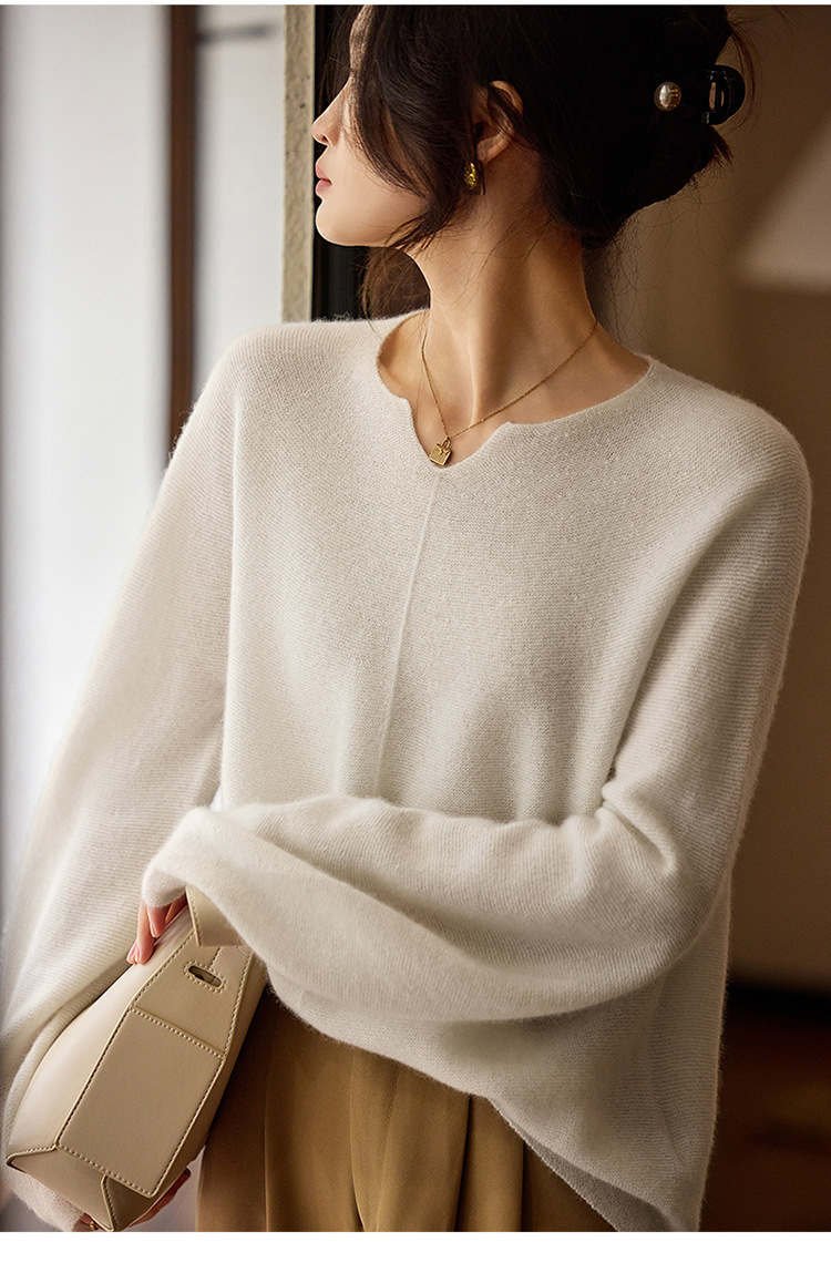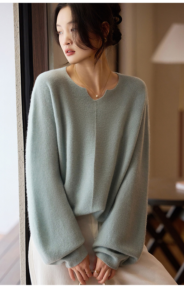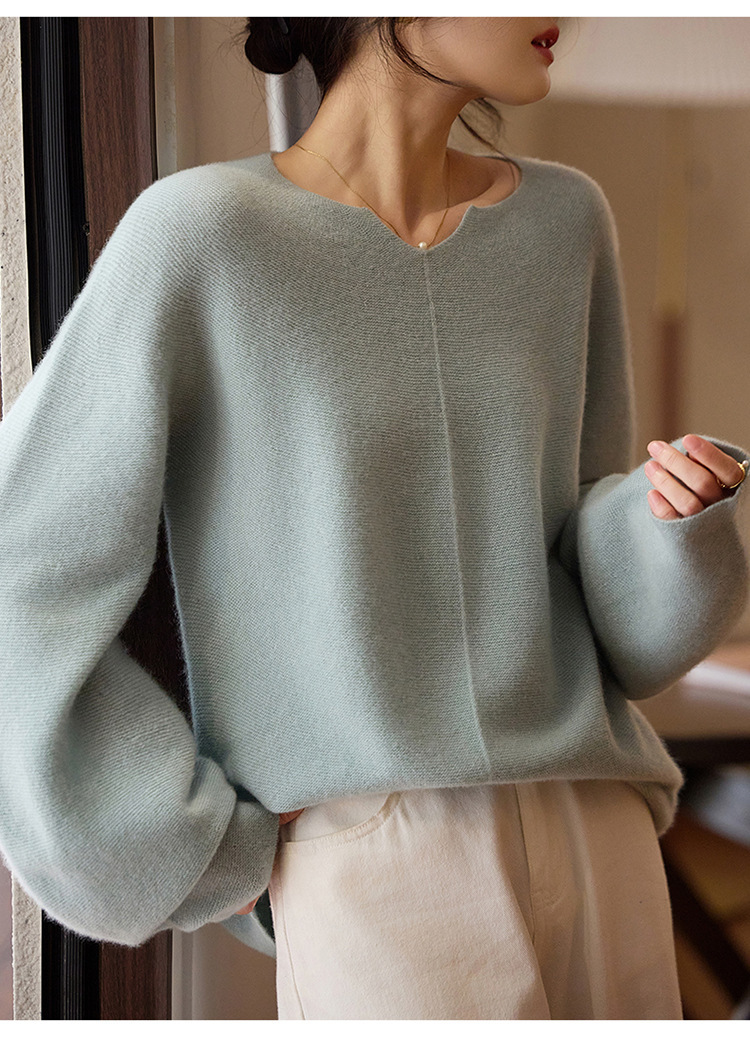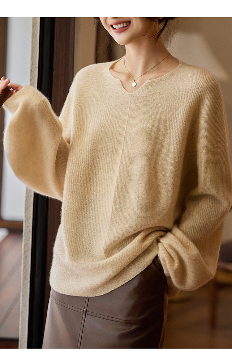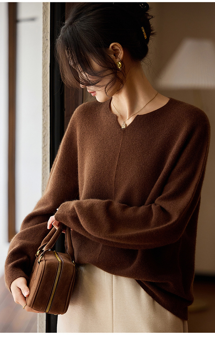 이른 봄 탑 여성의 새로운 게으른 스타일 V 넥 니트 긴팔 단색 느슨한 풀오버 소프트 왁스베이스 울 스웨터스토어 가기