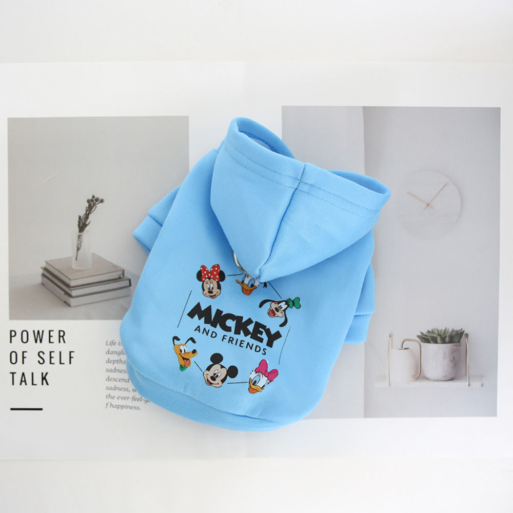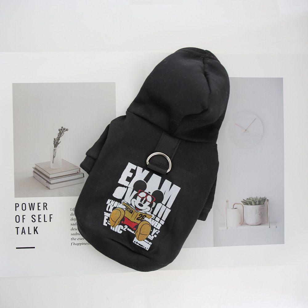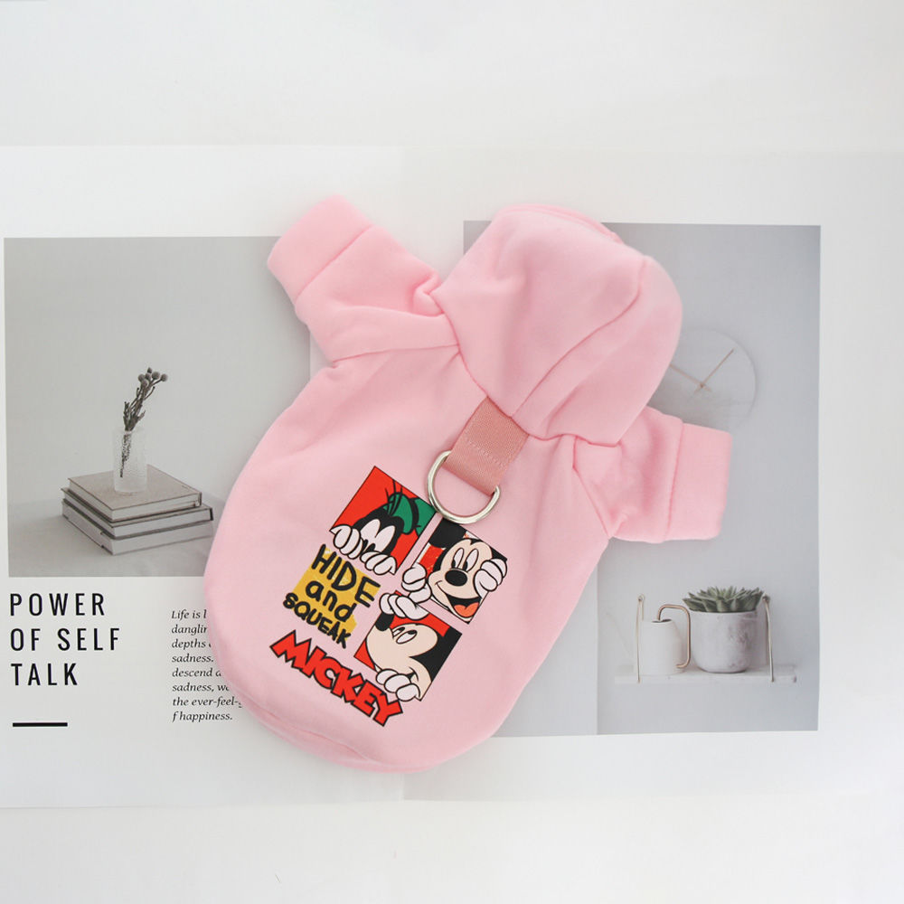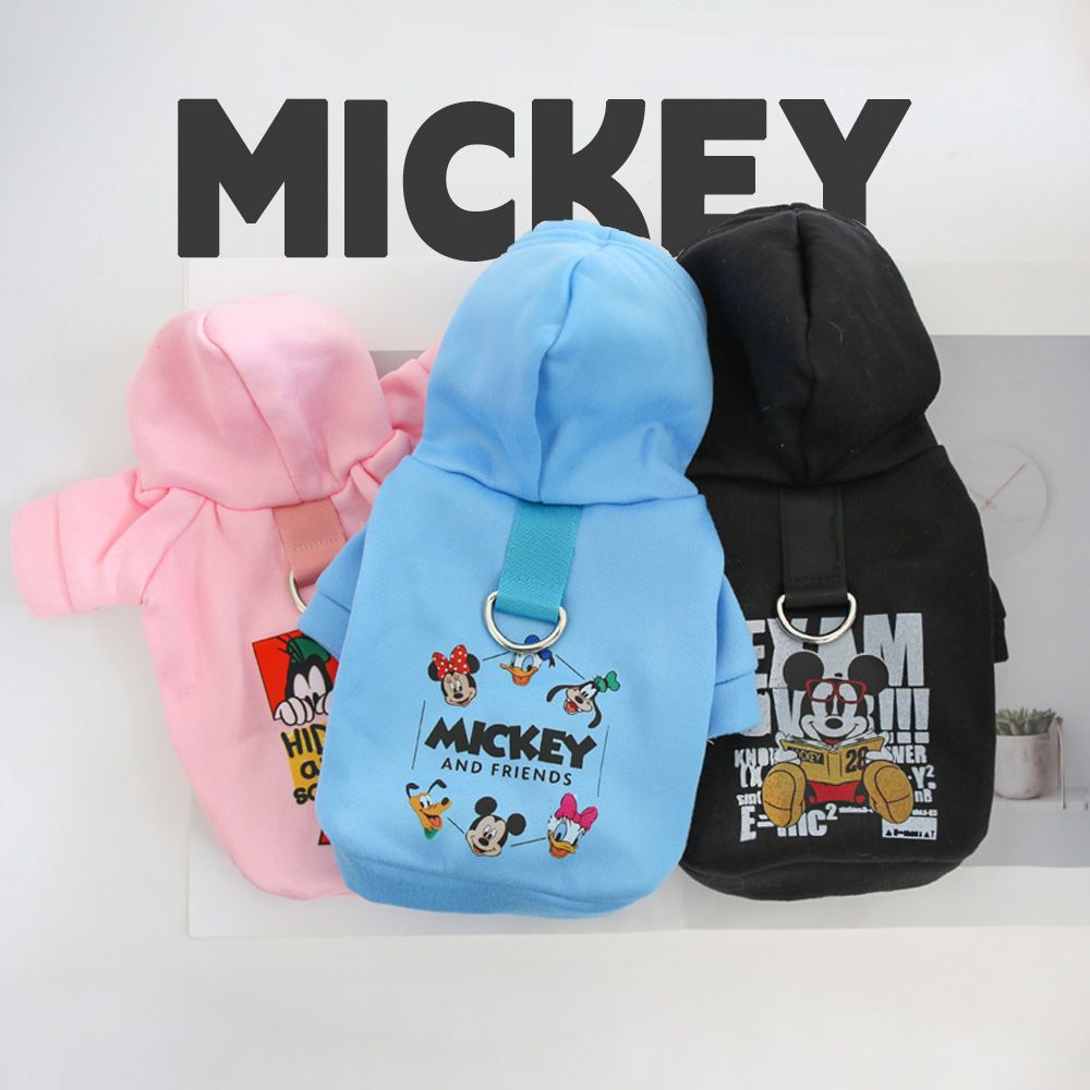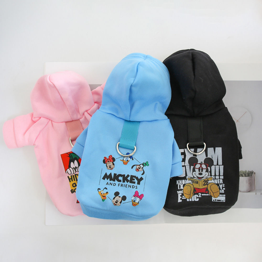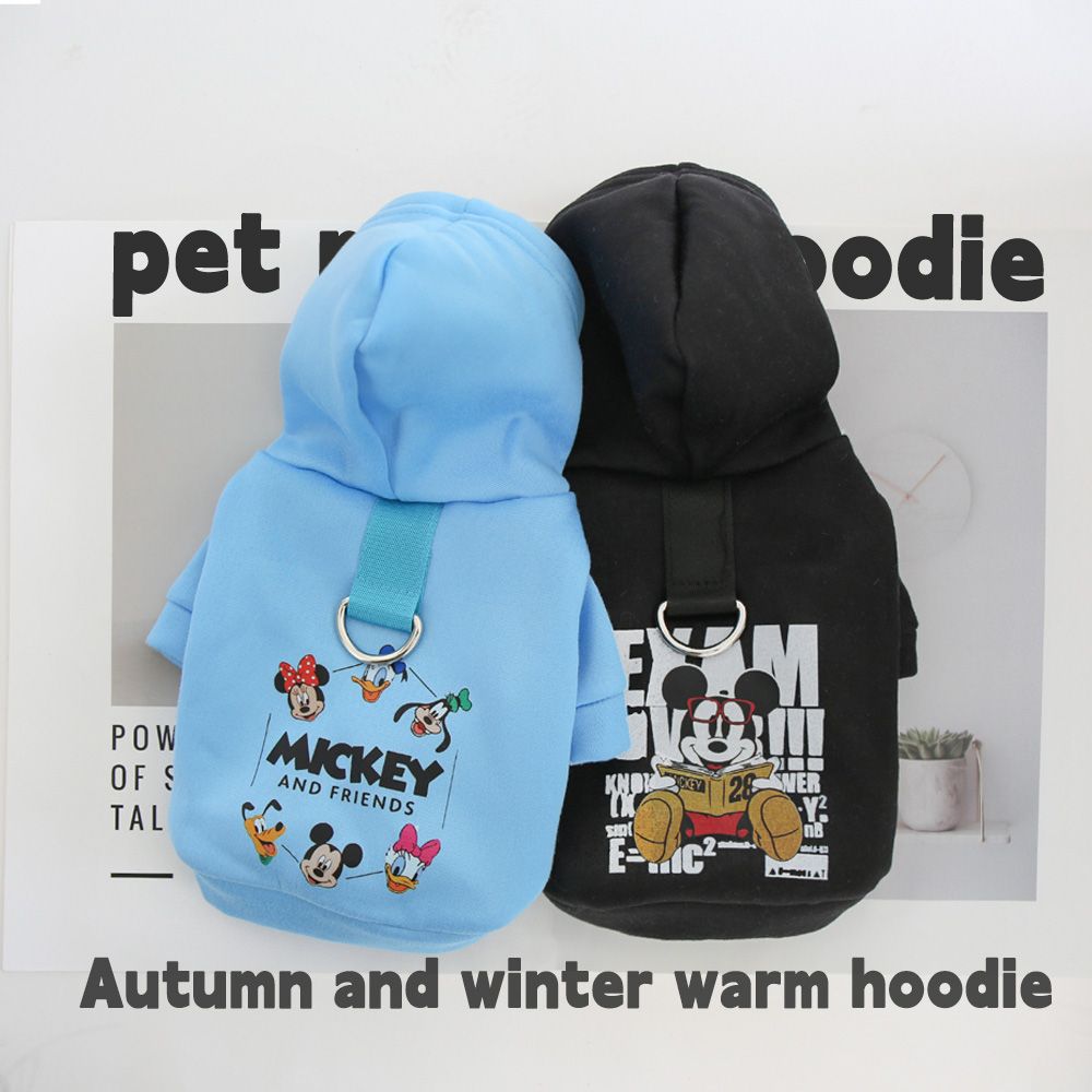 재고 가을과 겨울 기모 후드 풀오버 스웨터 미키 인쇄 고양이와 개를위한 견인 반지와 고양이 개 옷