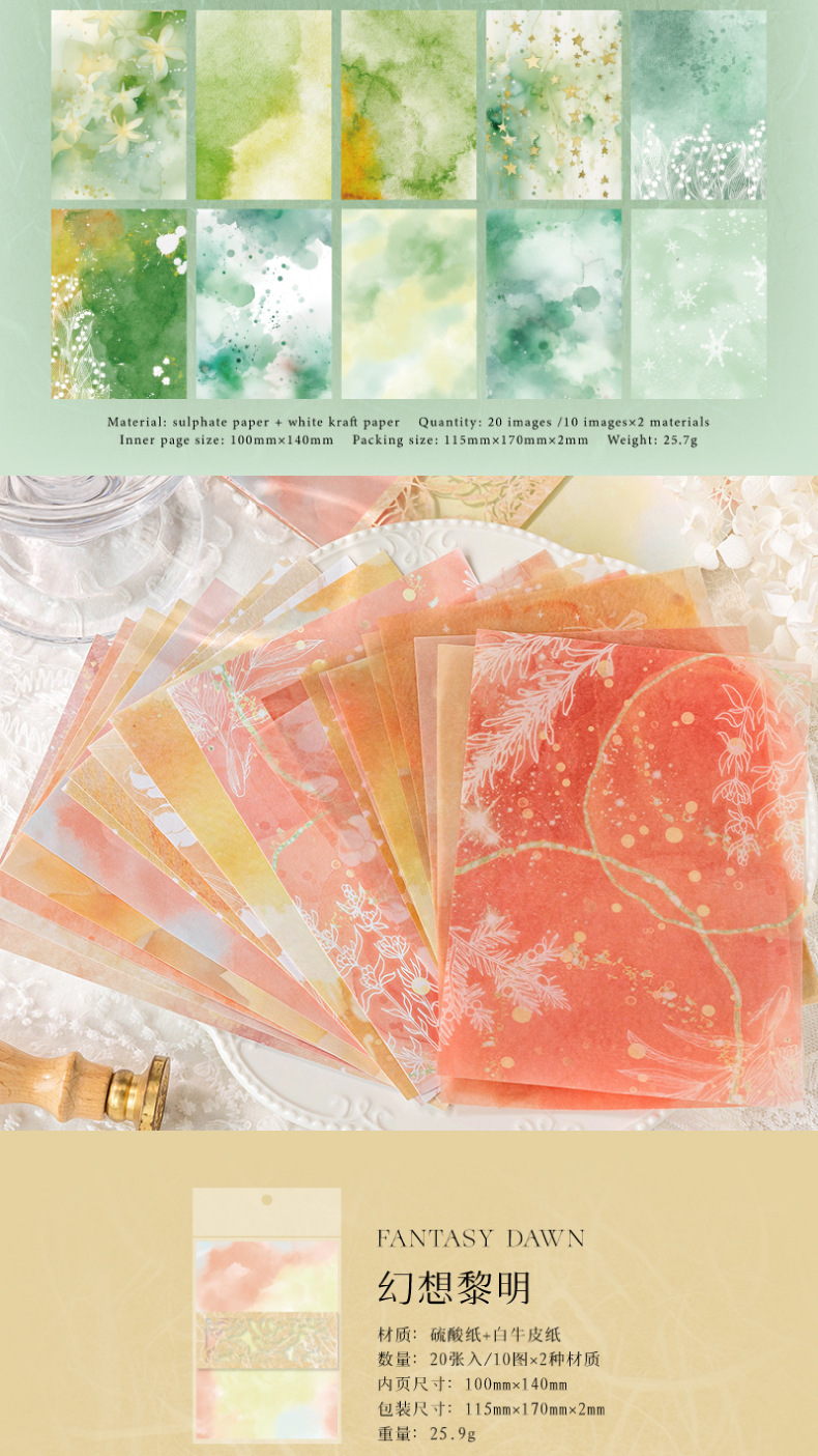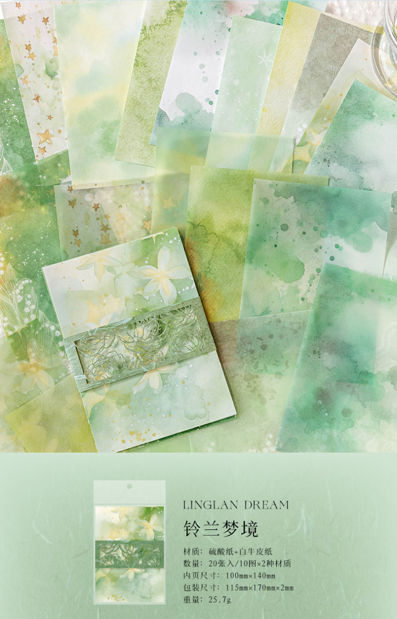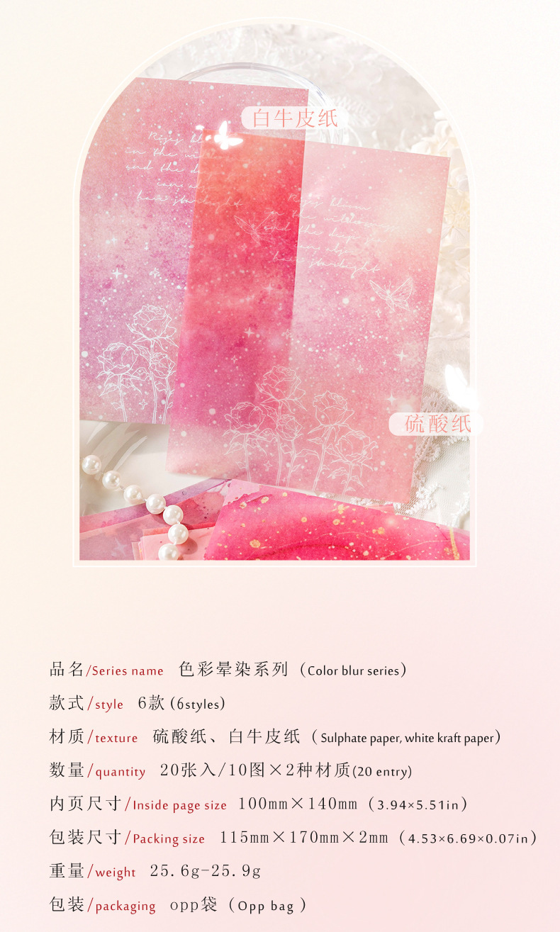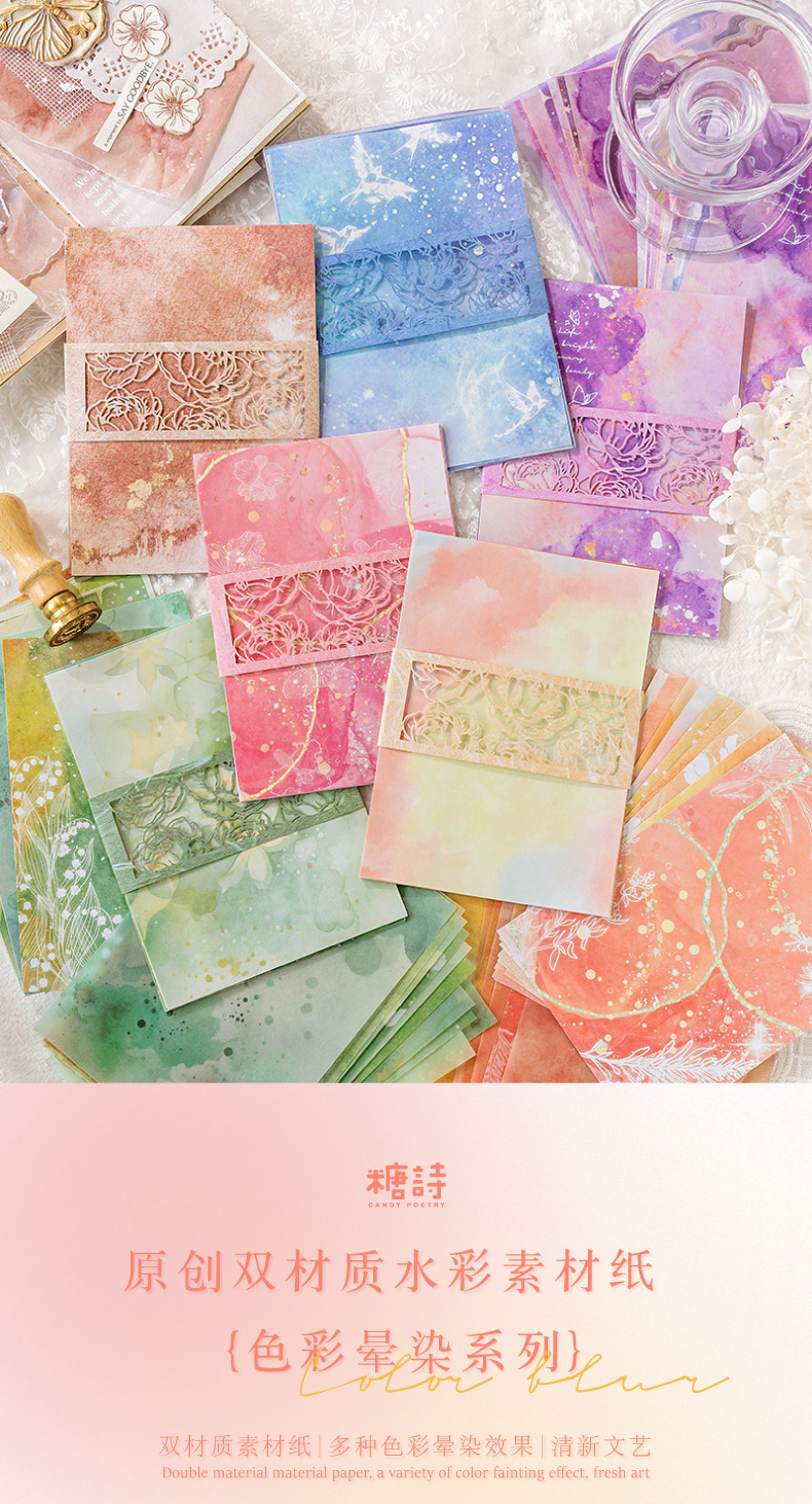 설탕시 이중 소재 수채화 소재 종이 컬러 비넷 시리즈 바람 손 계정 통증 가방 DIY 장식 기본 종이스토어 가기