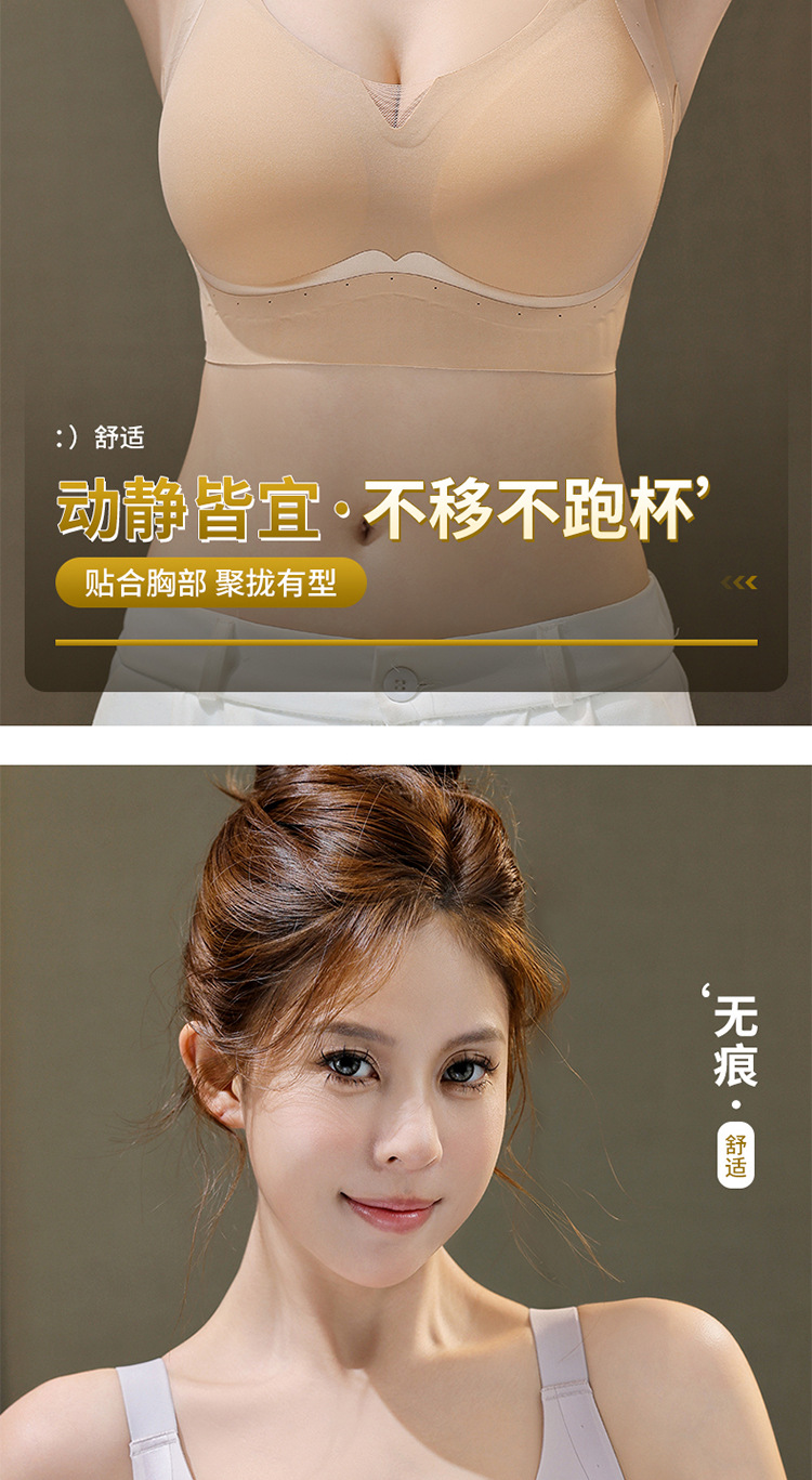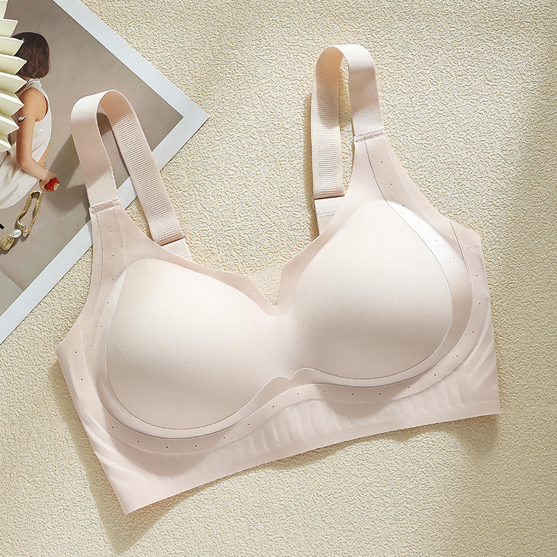 플러스 사이즈 tracless 속옷 여성의 여름 얇은 대형 가슴 작은 푸시 업 처짐 방지 무테 스포츠 브라