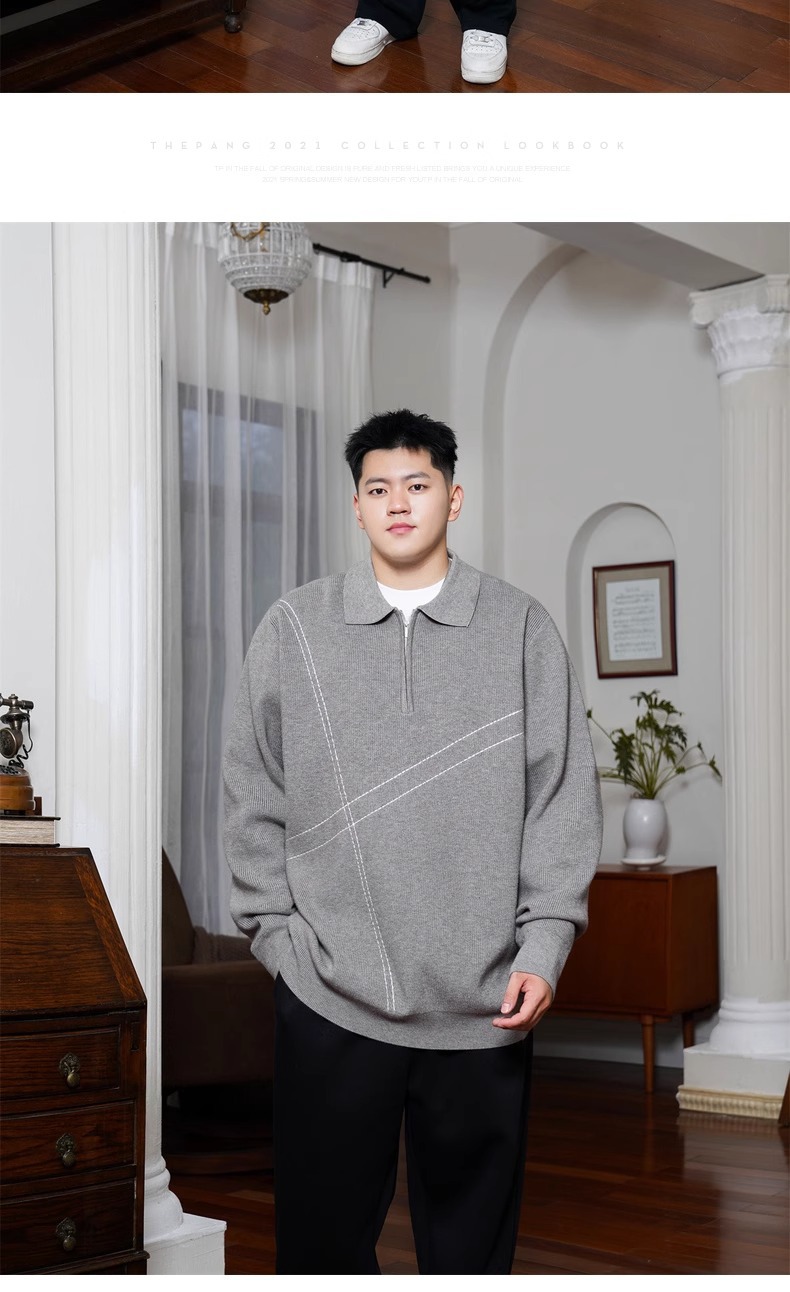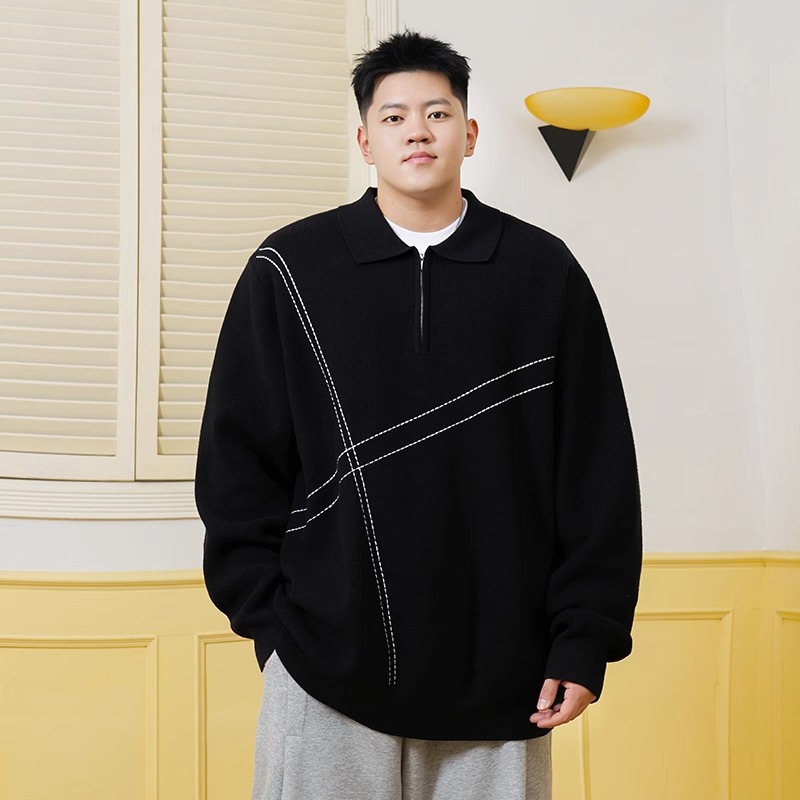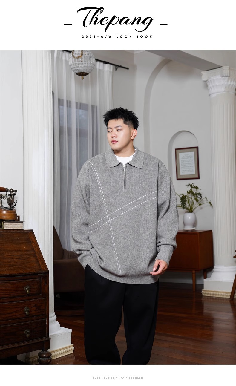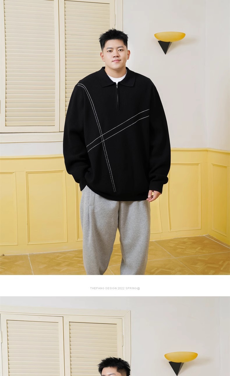 트렌디 한 브랜드 플러스 사이즈 남성용 뚱뚱한 겨울 반 지퍼 엘 플러스 뚱뚱한 플러스 느슨한 캐주얼 니트웨어 풀오버 스웨터스토어 가기