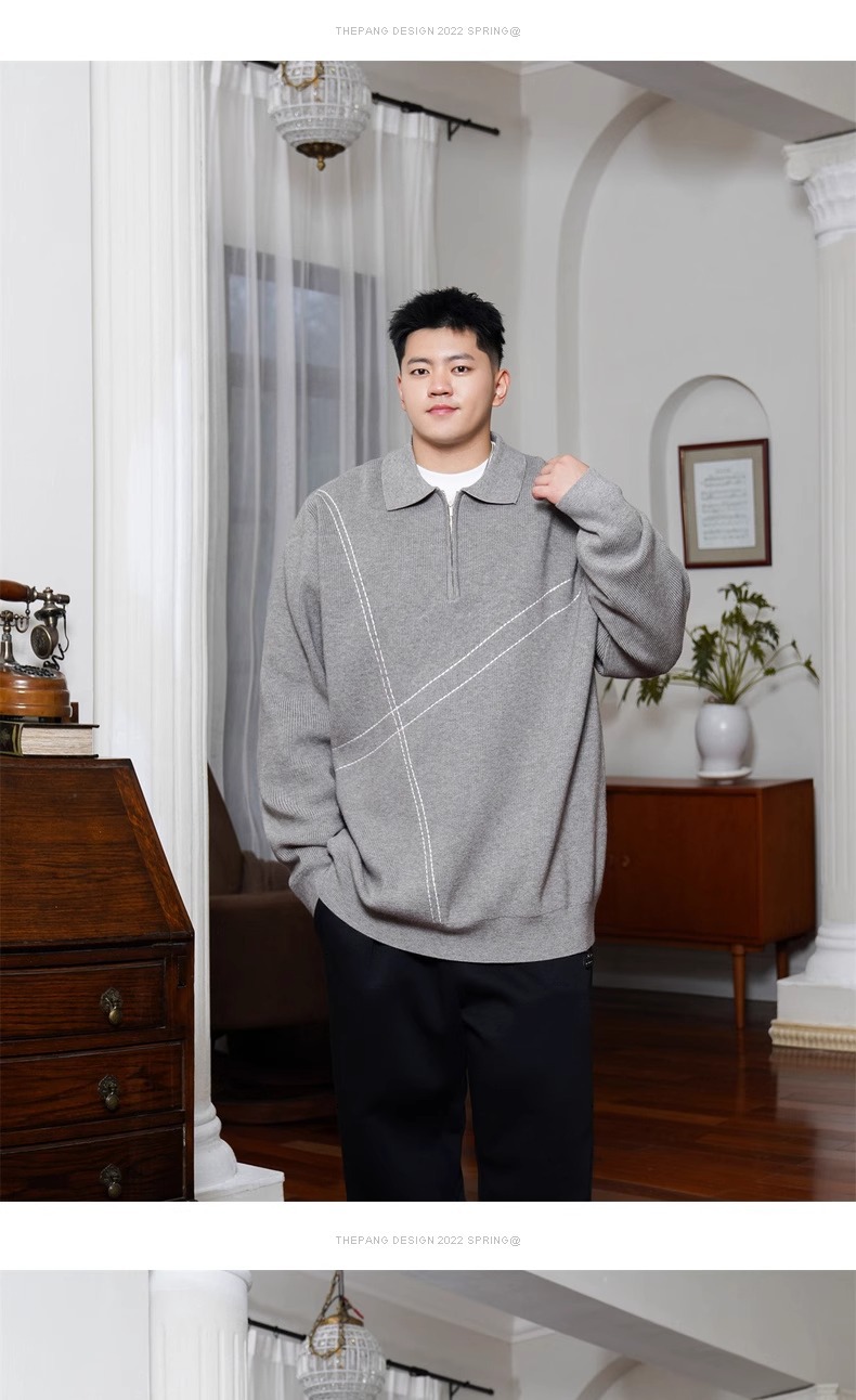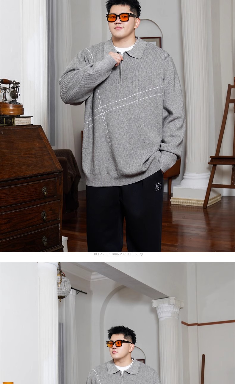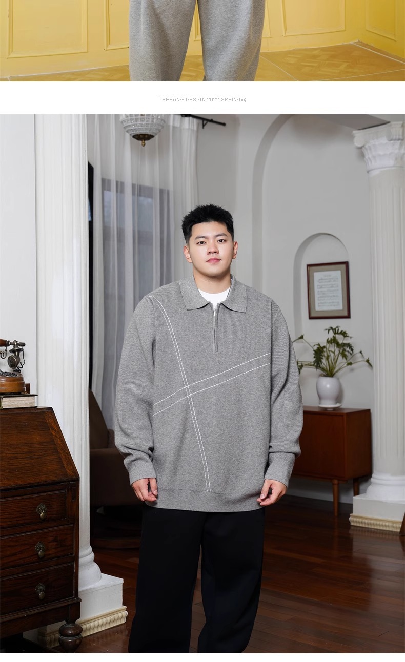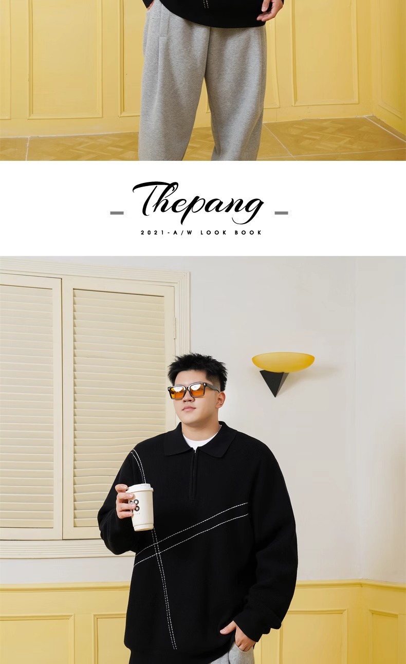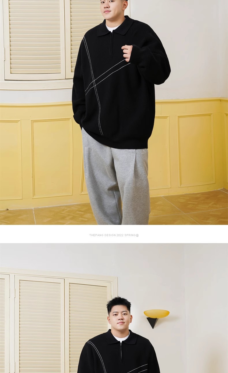 트렌디 한 브랜드 플러스 사이즈 남성용 뚱뚱한 겨울 반 지퍼 엘 플러스 뚱뚱한 플러스 느슨한 캐주얼 니트웨어 풀오버 스웨터스토어 가기