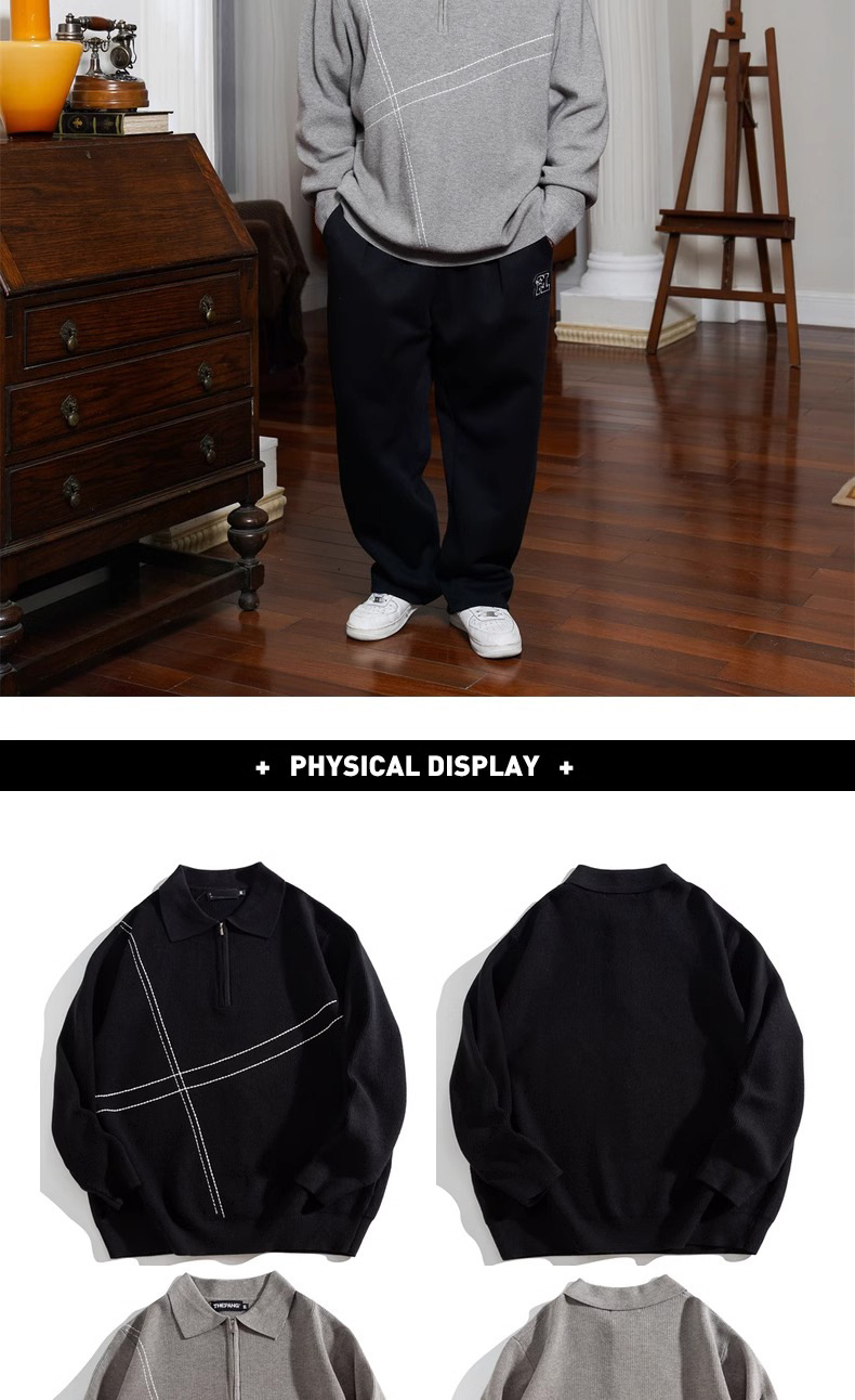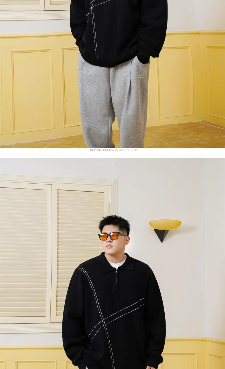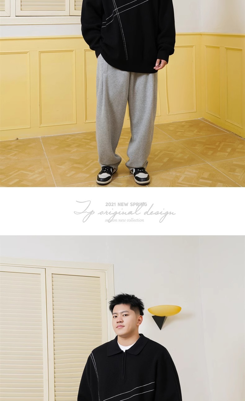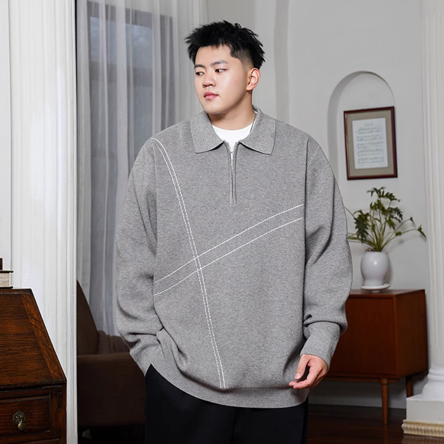 트렌디 한 브랜드 플러스 사이즈 남성용 뚱뚱한 겨울 반 지퍼 엘 플러스 뚱뚱한 플러스 느슨한 캐주얼 니트웨어 풀오버 스웨터스토어 가기
