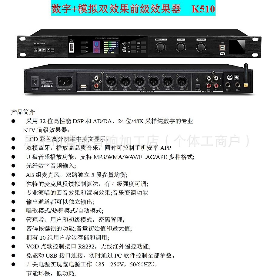 전문 사전 무대 블루투스 이펙터 마이크 안티 하울링 가라오케 홈 가라오케 ktv 무대 잔향 오디오 처리스토어 가기