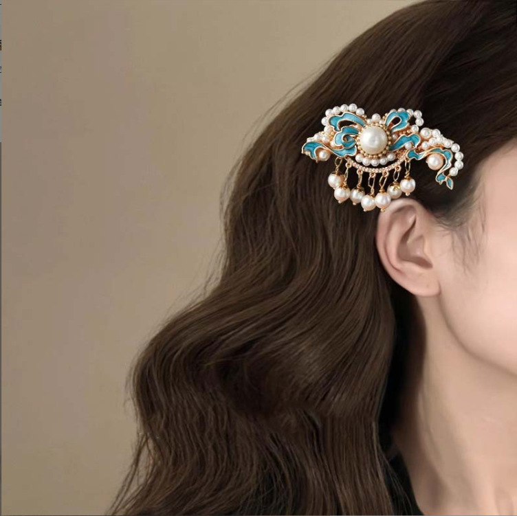 국가 스타일 불타는 블루 샹윤 헤어핀 헤어 액세서리 국가 스타일 기질 하이 레벨 사이드 뱅 클립 여성용 절묘한 헤어핀 헤드웨어