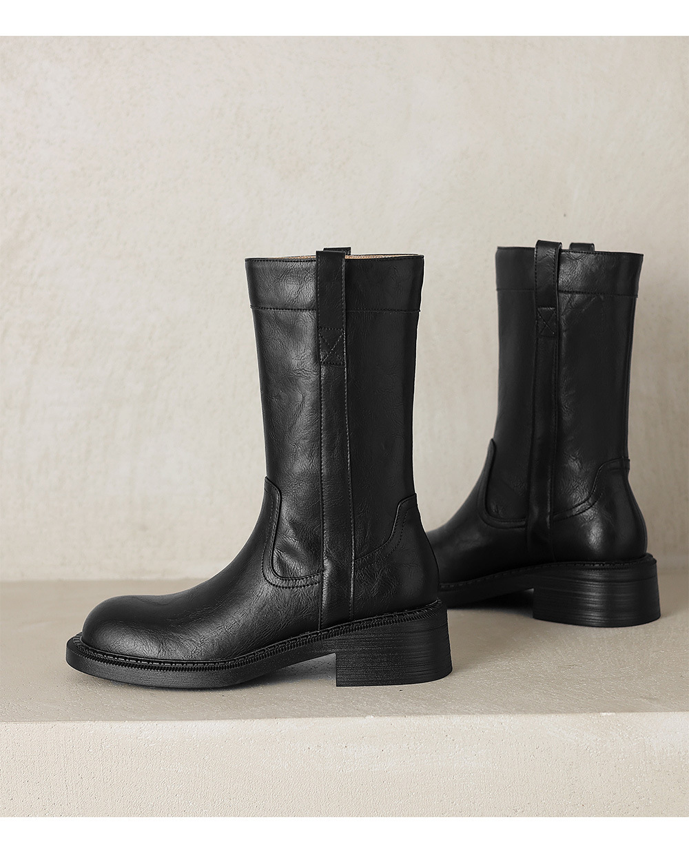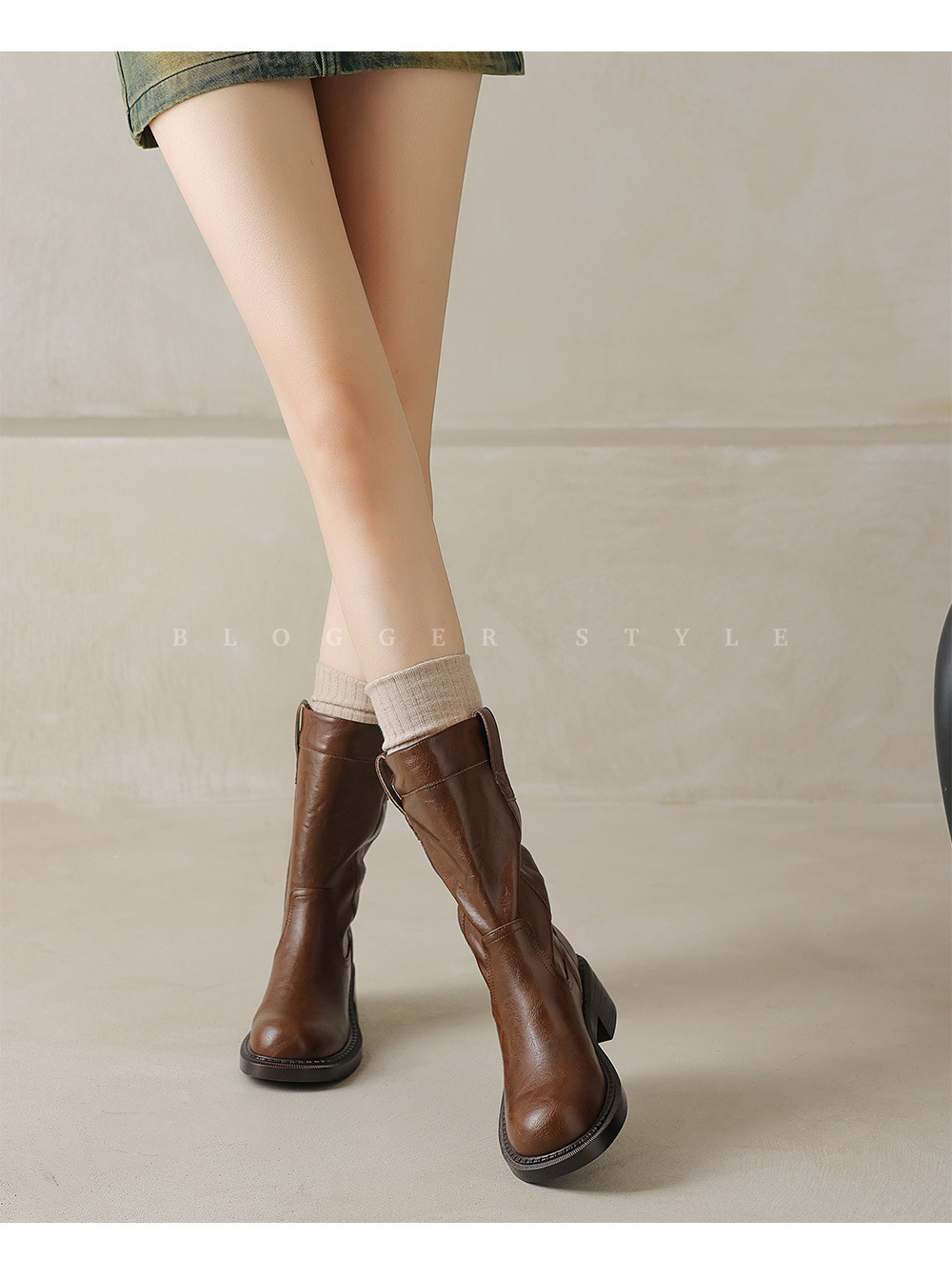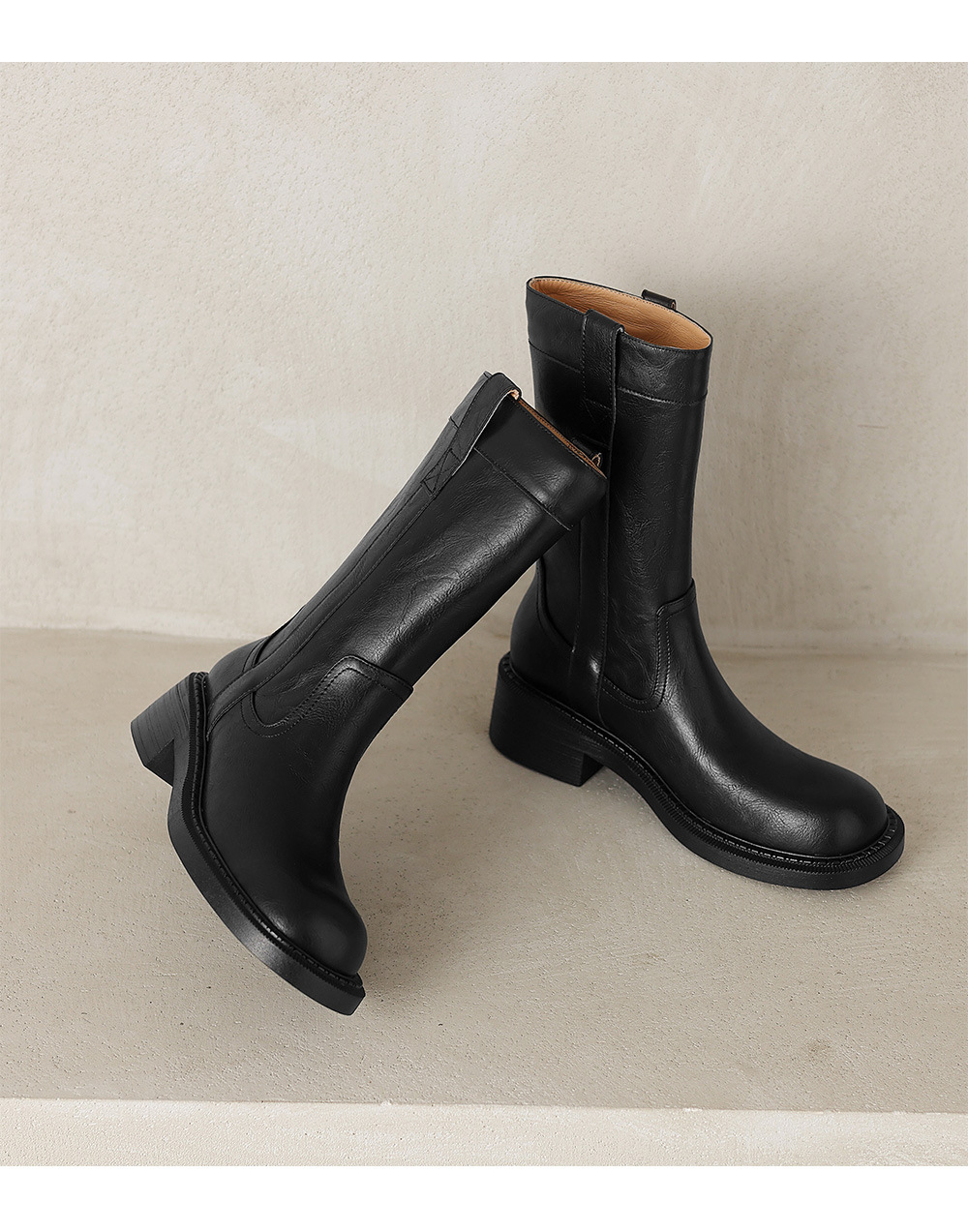 2025 레트로 다크 브라운 Maillard 라운드 헤드 두꺼운 힐 미드 힐 부츠 여성용 새로운 도착 스몰 올 매치 미드 힐 패션 부츠스토어 가기