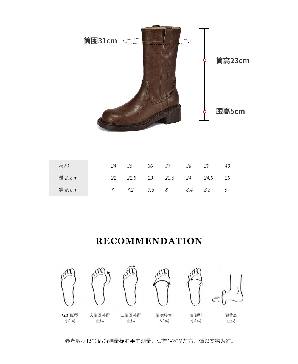 2025 레트로 다크 브라운 Maillard 라운드 헤드 두꺼운 힐 미드 힐 부츠 여성용 새로운 도착 스몰 올 매치 미드 힐 패션 부츠