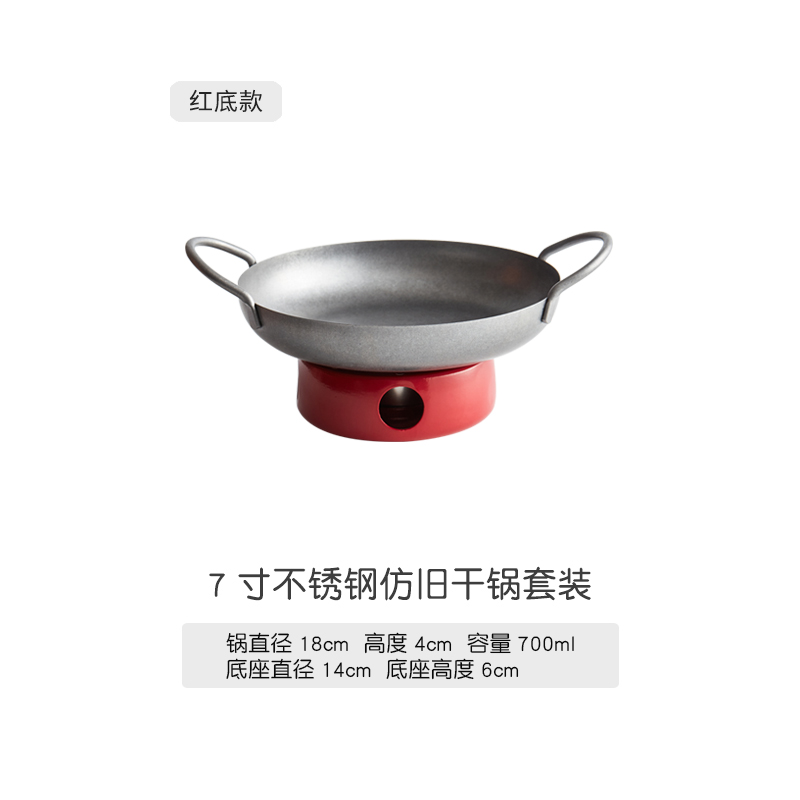 • 7inch 스테인리스 스틸 건조팬 세트-레드 베이스